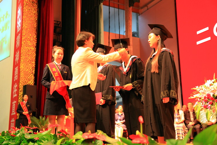 接着,郭爱先院长为毕业生代表扶正流苏并颁发毕业证书。