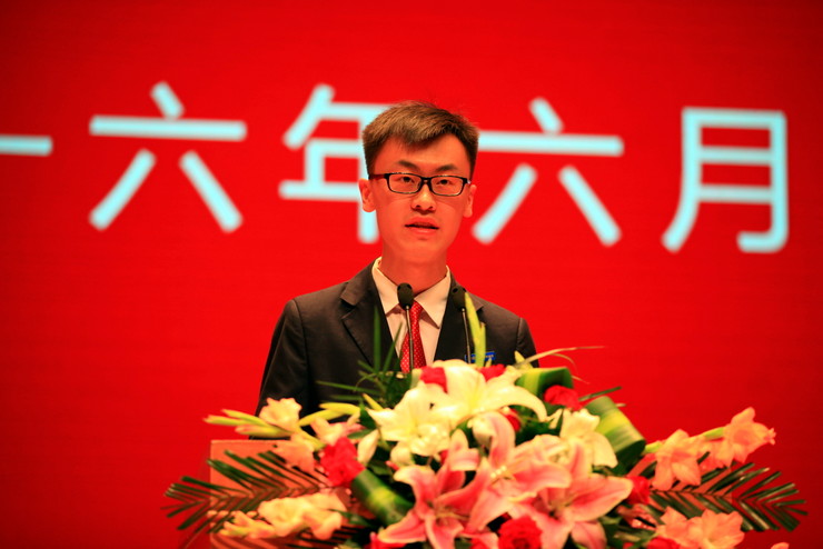 2016届信息工程系郭靖代表毕业生发言。他说:“升达留下了同学们高亢的青春之歌,蓬勃的青春之气,是同学们生命中最美好、最珍贵的记忆。感谢升达,让我们度过了最为美好的青春岁月。感谢母校给了我们最好的教育,感谢各位老师的辛勤培育,感谢创办人王广亚爷爷,我们会谨记母校教诲,为升达争光,为母校添彩。”
