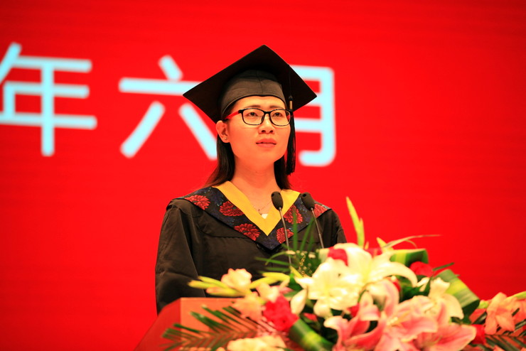 郭院长讲话。她向顺利完成学业的全体2016届毕业生表示热烈的祝贺,向无私奉献、辛勤付出的全院教职员工表示衷心的感谢,向我们尊敬的创办人王广亚博士致以崇高的敬意,并提议在座的所有人起立向创办人默哀。最后郭院长叮嘱毕业生:一是做一个善良、豁达、正能量的人;二是做一个好学、踏实、勇于进取的人;三是做一个勇于负责、勇于担当,对社会、国家有用之人。