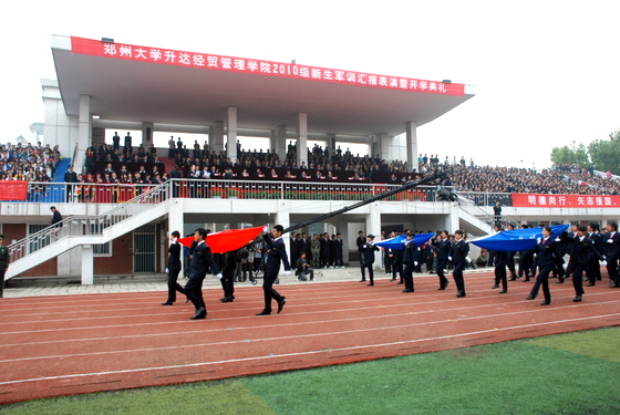 9月27日上午,我院在运动场隆重举行了2010级新生军训汇演暨开学典礼, 1452名普通本科新生分作27个方队,接受了创办人的检阅,汇报了自己的训练成果,2010级新生军训任务圆满完成。