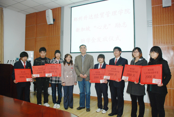 新加坡“心光”励志助学金是由新加坡华侨陈碧琪女士发起,由陈碧琪女士及亲友陈辉添先生、林克修先生、郑庆星先生、徐永源女士出资设立的,他们给基金起名“心光”,意思是只要有心,哪怕是尽一点微薄之力也能给需要的人带来一丝光明,希望能让受助的贫寒学生感受到一点温暖。此项助学金是由营销系寇玉琴老师牵线联系的,是寇玉琴老师向我院学生奉献的又一爱心。为了不辜负陈碧琪女士的期望,学务处专门制定了实施细则,确定申请标准、选拔程序,审核公示办法,随后组织各系按照细则择优评选,对资助人选审核后,又将受助学生资料转送给出资人审核确认,本次获助的7名同学均是我院品学兼优的特困生。