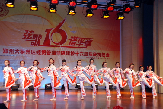 随后,西洋乐合奏《花火》、《自由探戈》以独特的艺术表现形式,拉开了整场晚会的神秘面纱,为广大师生观众献出了精美绝伦、新颖独特的听觉盛宴。现代舞《Windy》、《2AM》展示了当代大学生澎湃的激情和朝气蓬勃、昂扬向上的精神风貌,彰显了升达学子青春的活力。婉约典雅,清新宜人的舞蹈《秀色》,十几位来自会计系的姑娘们如一只只艳丽的蝴蝶,舞姿轻盈,婀娜多姿,演绎了含蓄温婉的东方神韵。女声独唱《天下无双》,歌手精湛的唱功,充沛的情感,超凡脱俗的海豚音与舞台朦胧的灯光巧妙地融合在一起,动人心弦的歌曲近乎完美地呈现在观众眼前,让聆听着如痴如醉。舞蹈《英台初装》将英台梳妆打扮的温文尔雅与其读书求学的奋发图强相结合,表现了古代女子勤奋好学的精神。歌曲《红旗飘飘》以其真挚的情感,激昂的演唱表达了他们对祖国的热爱。院广播中心以一首精彩深情的诗朗诵《中国梦》向母校十六华诞送上最真挚的祝福。国贸系舞蹈《剪纸姑娘》动作欢快生动,舞步精巧活泼,姑娘们似用双手剪裁自己的美丽人生。最后,艺术系安冉老师与学生演出的歌伴舞《和谐中国》将晚会推向高潮,赢得台下经久不绝的掌声,整场晚会圆满落幕。