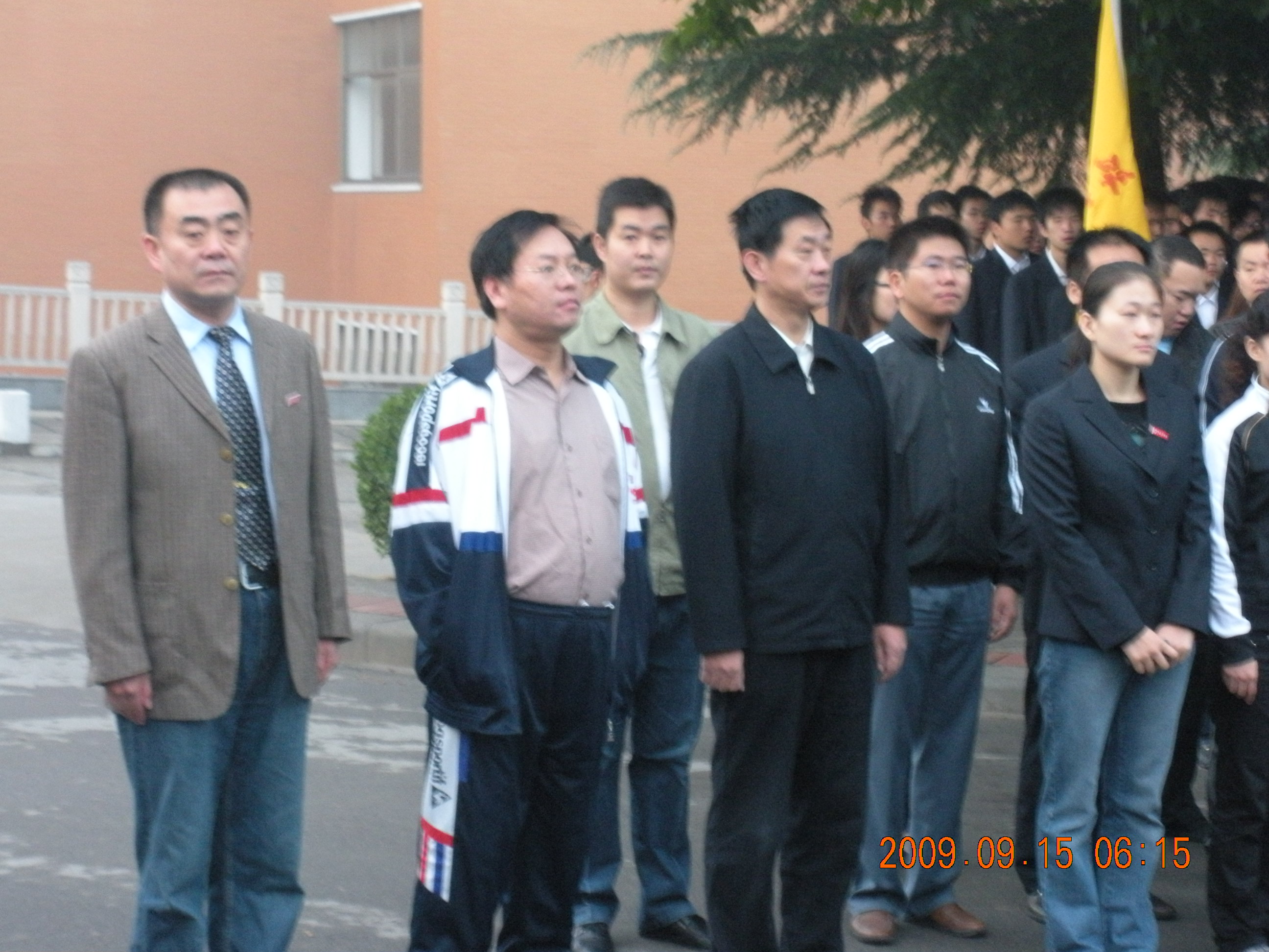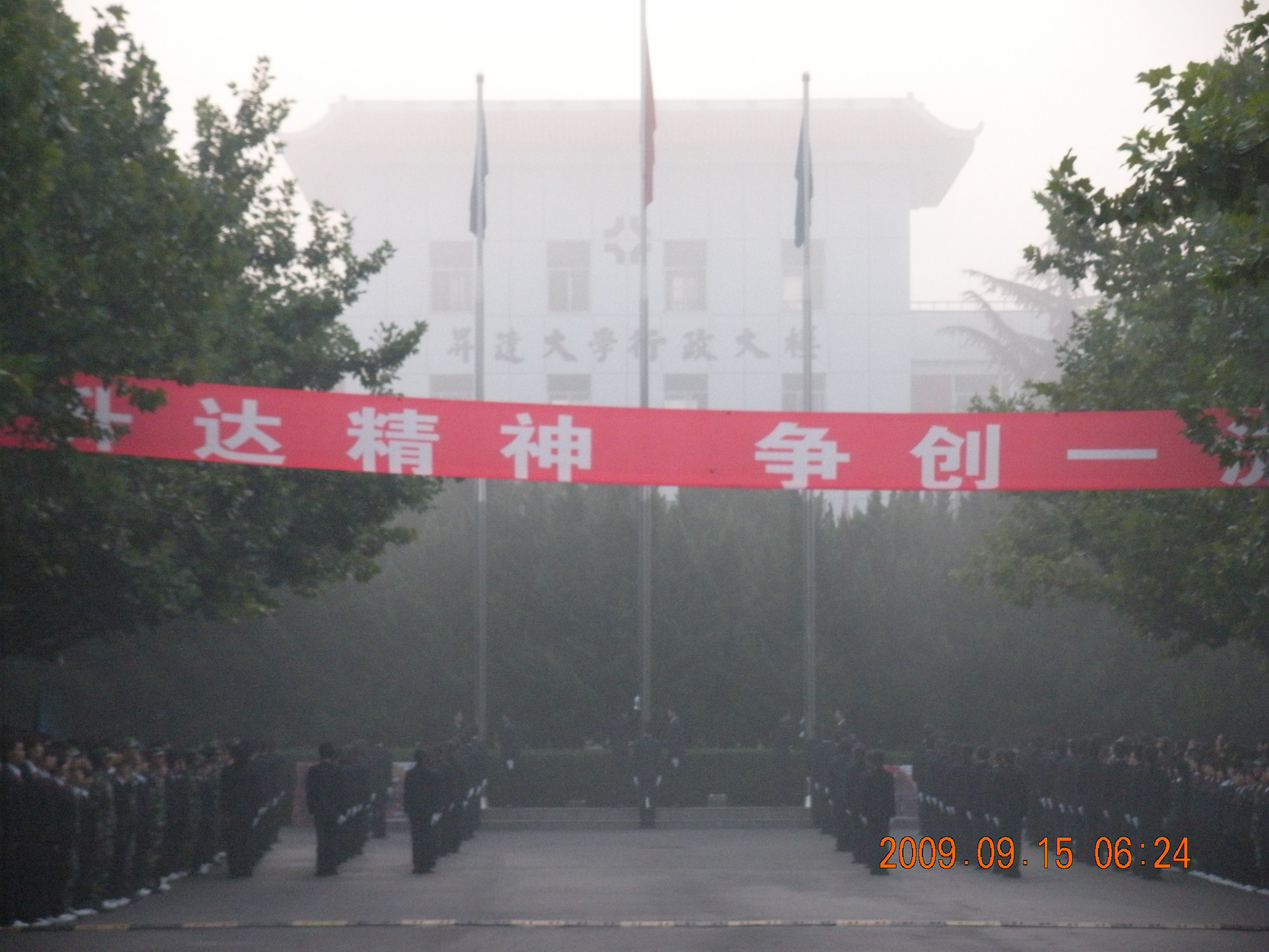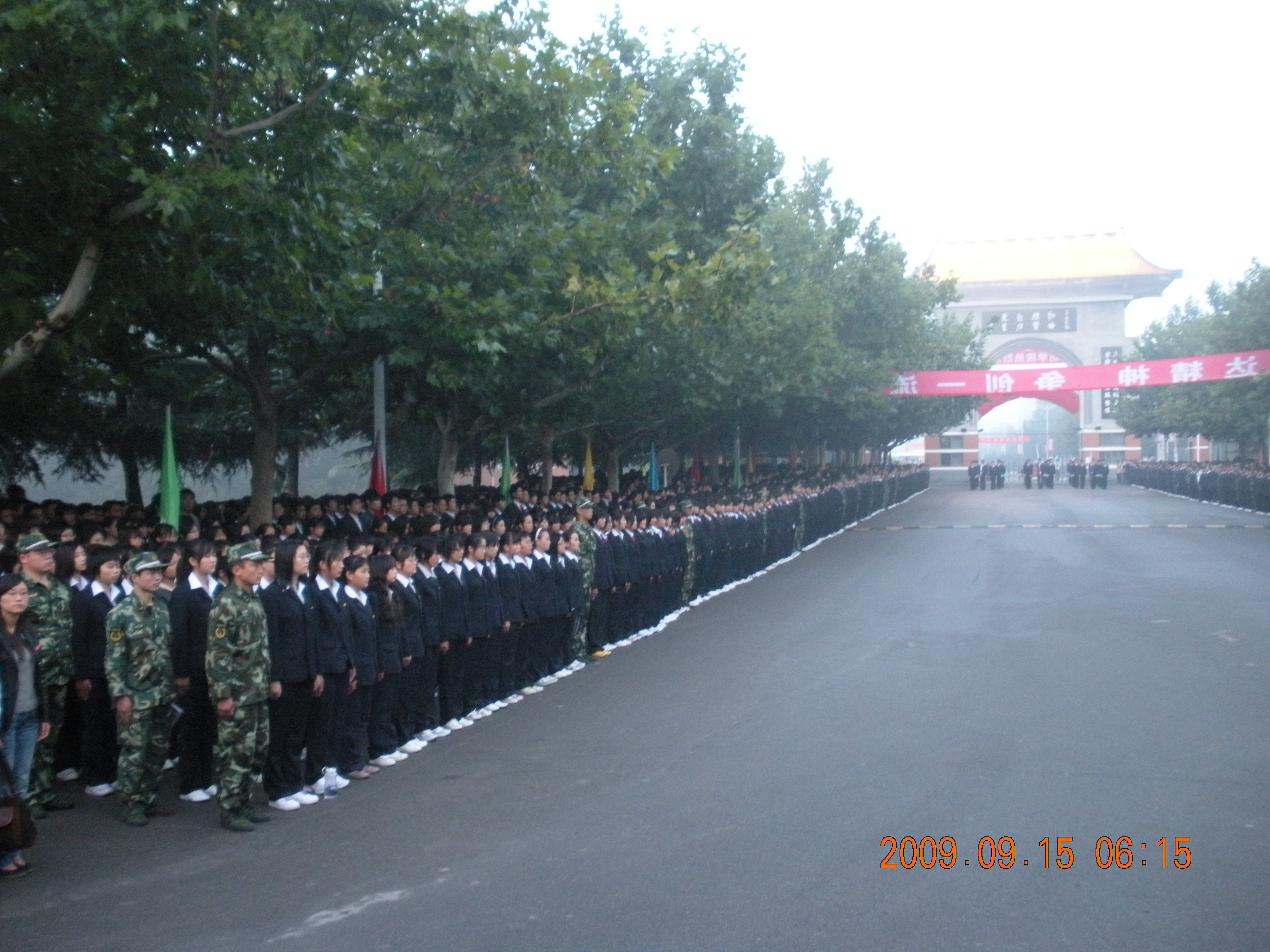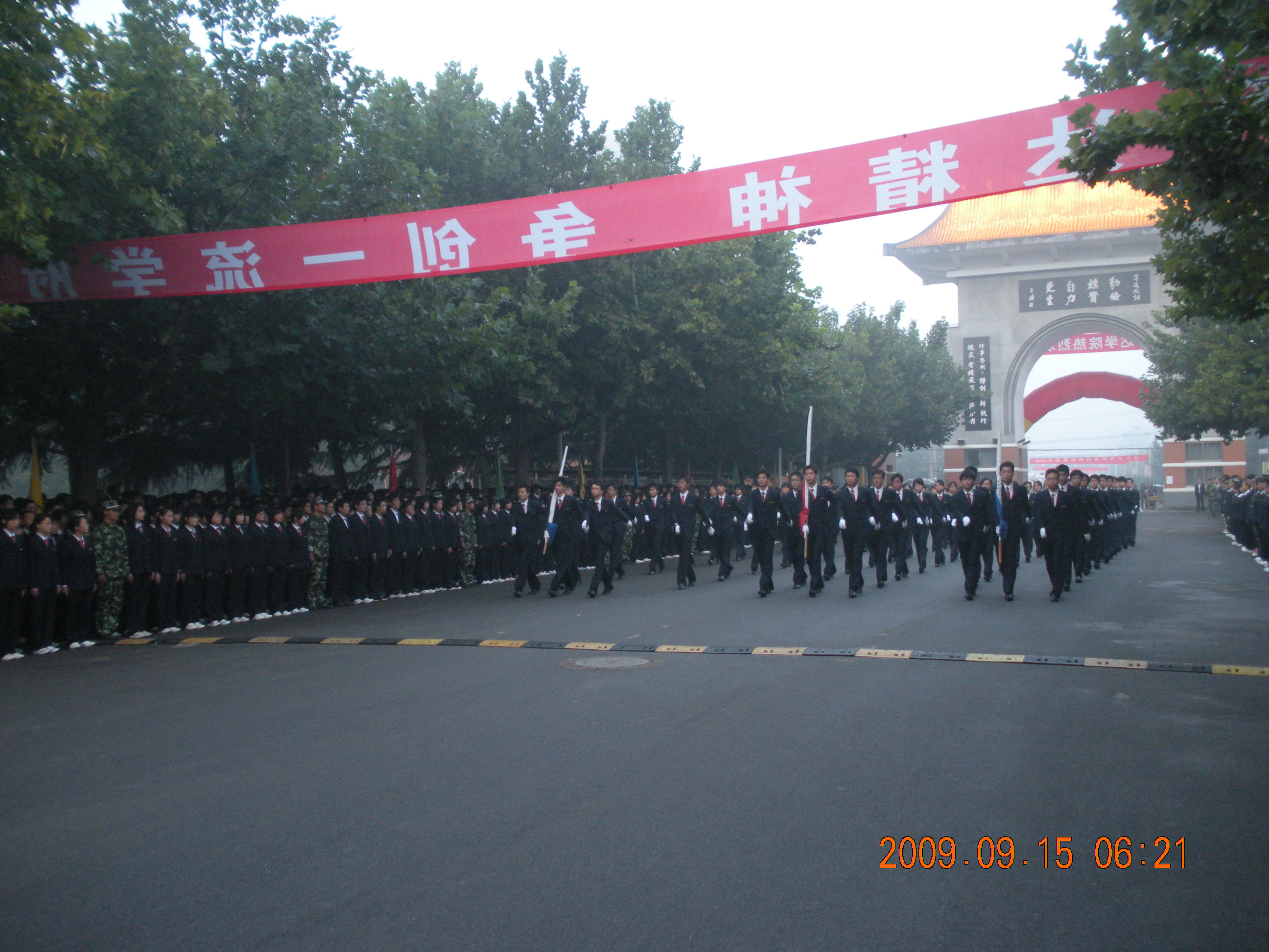 9月15日清晨,我院2009级四千五百余名新生在教官及行政秘书、辅导员的带领下,迎着冉冉升起的旭日进行升国旗爱国主义教育。院党委常务副书记戎庭银、副院长张金安、学务长张现水出席了升国旗爱国主义教育。