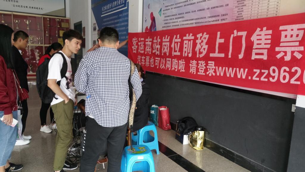 为服务学生,方便学生,保障学生安全、便捷回家,学务处根据校领导指示,积极与客运南站联系,邀请客运南站于9月26日上午9:30至下午15:30在我校体育馆大厅组织“岗位前移,上门售票”活动,我校学生可以享受不出校门即可买到郑州各车站打折车票的优惠。