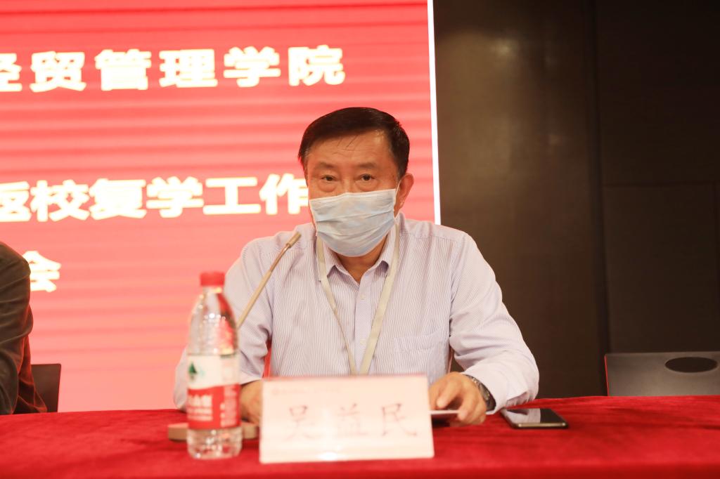 吴益民副校长介绍了我校线上教学开展情况,就毕业补考、毕业论文认定、毕业手续办理以及期末考试工作进行了部署和说明。