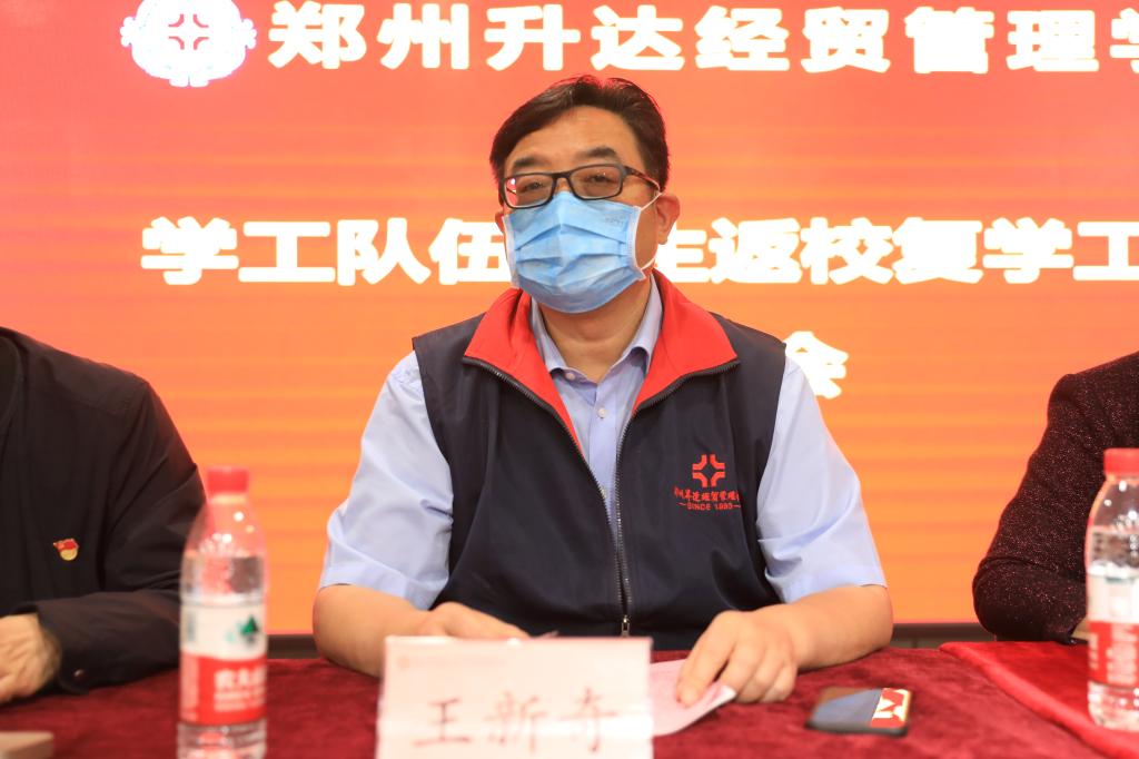 王新奇执行董事首先代表王淑芳董事长,向广大学工同仁表示感谢。他要求大家一要尽快做好学生返校复学的各项准备工作,切实做好返校前、返校途中、返校后学生的教育、管理、服务工作;二要做好本职工作,各安其位、各司其职、各负其责,严肃工作纪律,落实“三守”精神,依法依规办理工作及个人事务,让学生感受到学校的温暖,为学生的成长成才加油助力;三要注意安全卫生,认真排查安全隐患,耐心做好学生的思想教育工作,确保学生工作不出现安全事故,同时按照防疫的要求,做好卫生整洁工作;四要永怀感恩之心。面对严峻的疫情形势,董事会王淑芳董事长,体谅教职员工在疫情期间面临的生活困难,顶住压力,坚持正常全额发放工资,提高员工工资待遇,出台《辅导员岗位职称申报评审实施办法》,打通了辅导员的晋升渠道。同时,他希望大家能体谅董事会董事长的一片苦心,感受董事会王淑芳董事长的关怀,用感恩的心去工作、去生活,珍惜工作机会,爱岗敬业,爱国爱校,回报社会,报效国家。