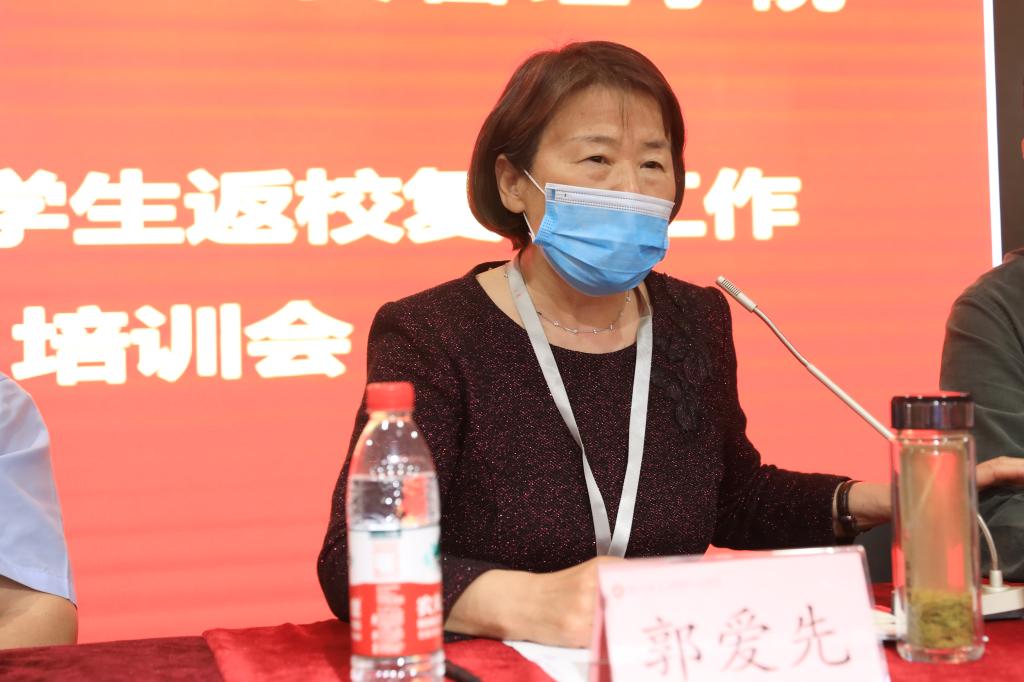 郭爱先校长首先对我校学工队伍所做的各项疫情防控工作给予了充分肯定。她要求大家一要认清疫情防控严峻形势,严格落实上级疫情防控要求;二要高度重视学生返校、毕业离校工作,严格遵从学校安排,把学生返校、毕业离校的各环节抓实、抓细、抓好;三要认真履行岗位责任,提前做好毕业生返校前的各项准备工作,精准了解学生需求,周到细致地服务学生,确保学生安全返校,文明在校,满意离校,顺利毕业。