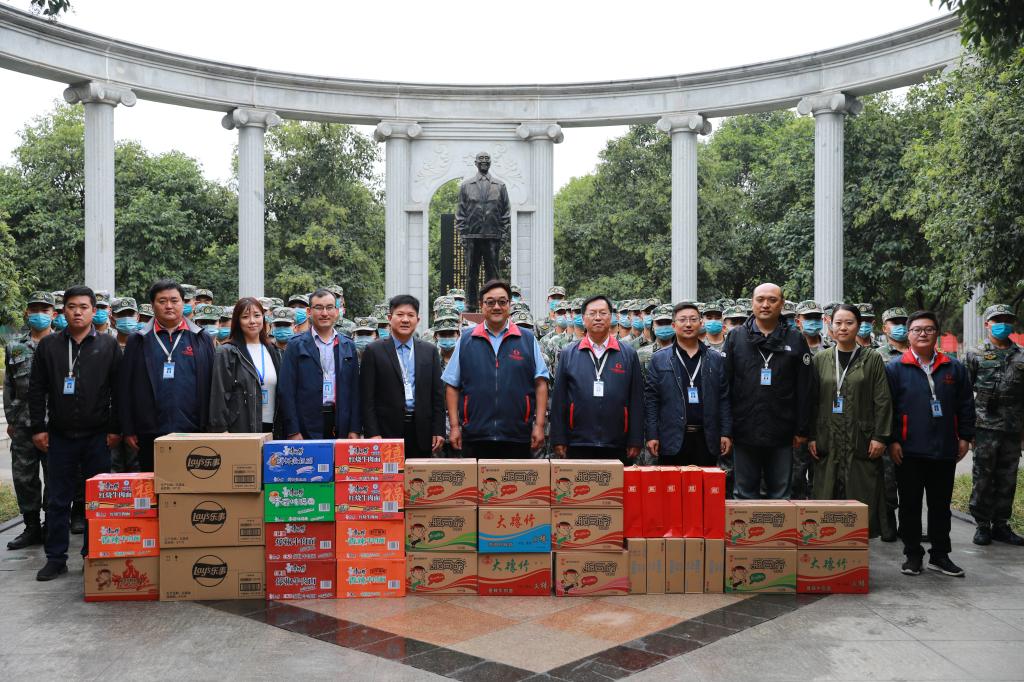 检阅结束后,王新奇执行董事、张金安副校长,在张红阳学务长、杨存博处长、秦旻主任、沈定军处长的陪同下,看望慰问了军训教官团全体教官,并送去了慰问品。