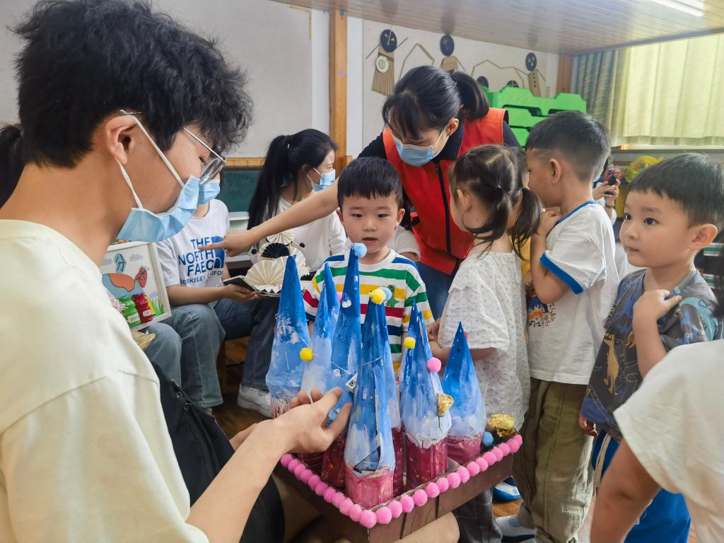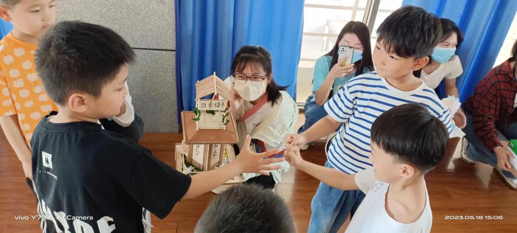 活动开始后,小朋友们目不暇接,被一件件精美的作品所吸引,他们各自挑选着喜欢的“礼物”,有时几位小朋友同时看上一件作品,为获得心仪的礼物,他们玩起了石头剪刀布游戏,妙趣横生,让人忍俊不禁。同学们通过介绍作品的使用材料和制作过程,积极与小朋友进行互动,鼓励他们养成热爱思考、勤于动手、热爱劳动的习惯,从身边小事做起,帮助爸爸妈妈、叔叔阿姨、爷爷奶奶以及身边的其他人,做一些力所能及的事情,做一个勤劳、热爱劳动的小朋友。