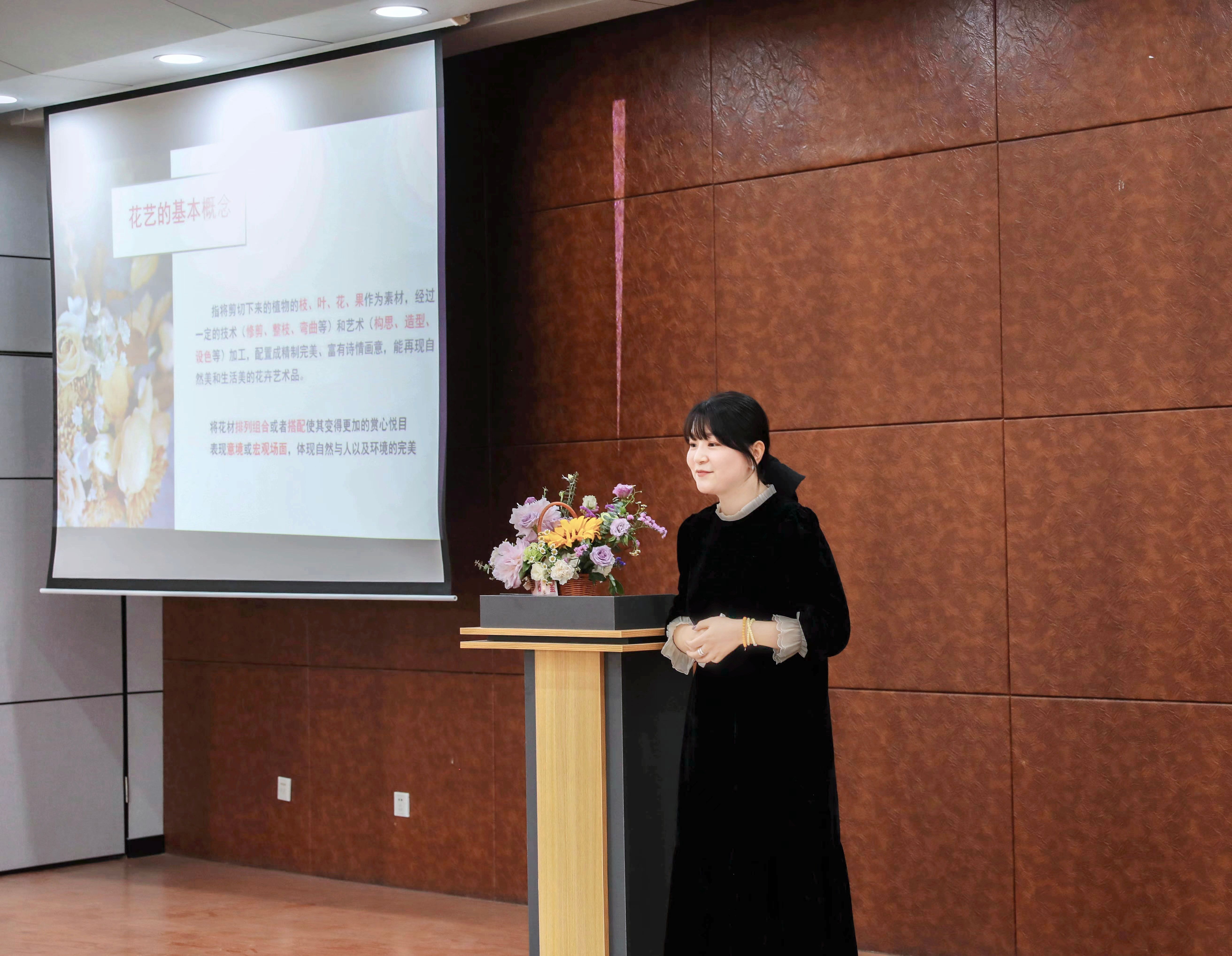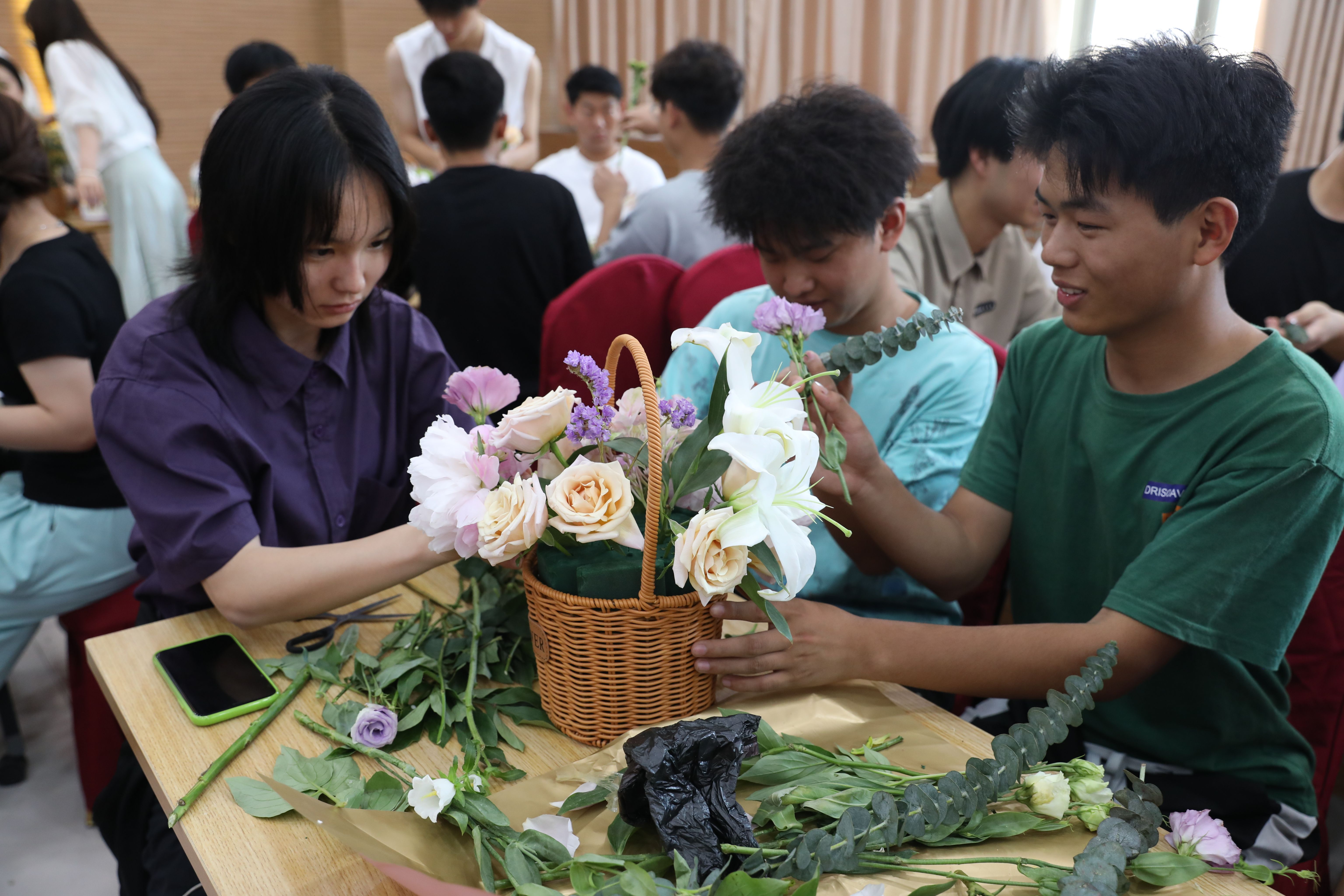 插花作为一门古老的传统技艺,不仅仅是将各种花材进行简单的组合摆放,它更是一种文化和审美的传承。通过学习,同学们不仅学习到了花材的选择、花型的构思、色彩的搭配、插花的文化意义和审美理念。通过对花艺的学习与实践,同学们的劳动观念和审美意识得到了升华,他们的创造力和想象力得到了充分的发挥。同时,这也是一场生动的思政实践课,通过劳动亲身感受马克思所述的“自由劳动”之美。
