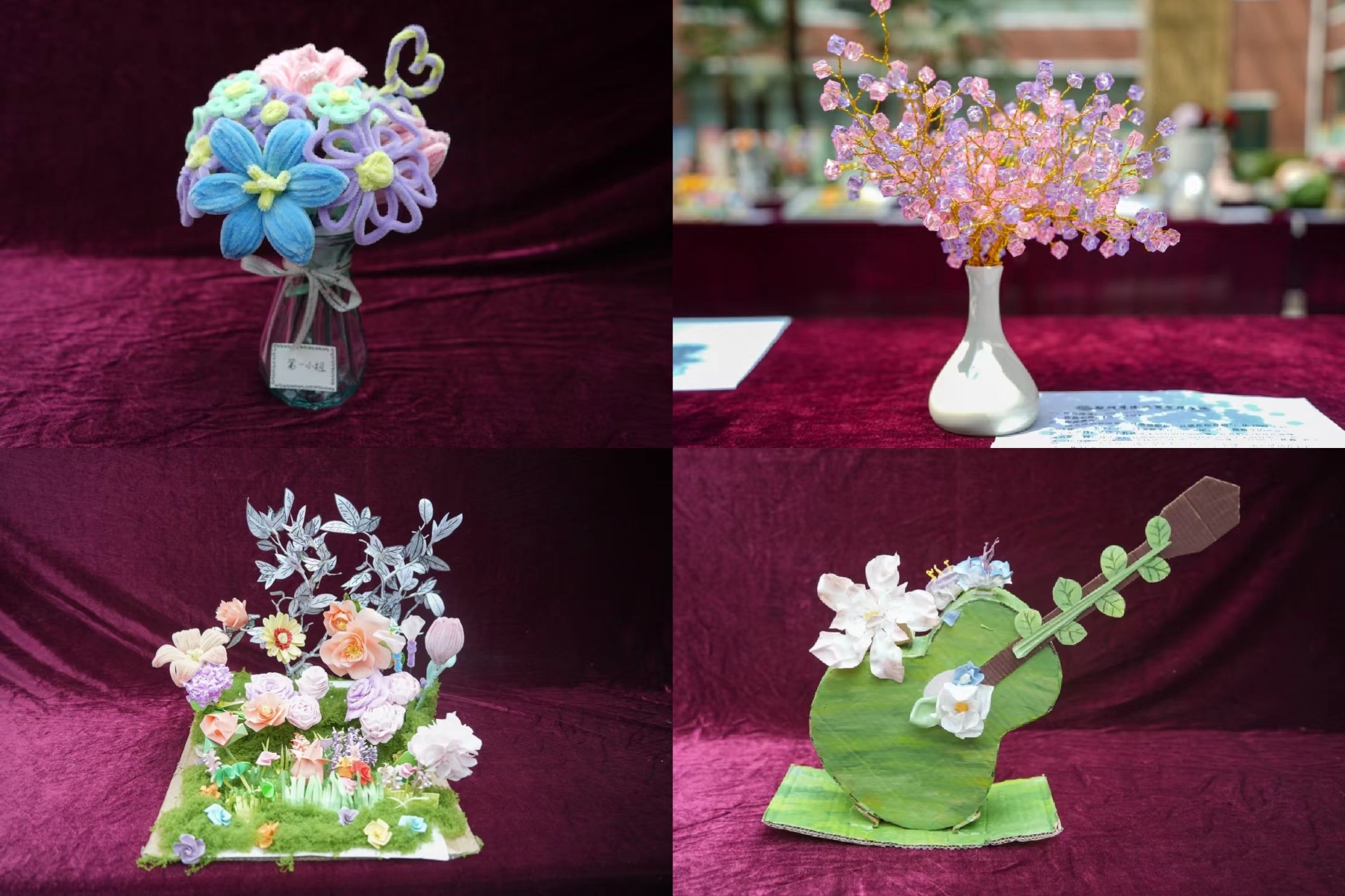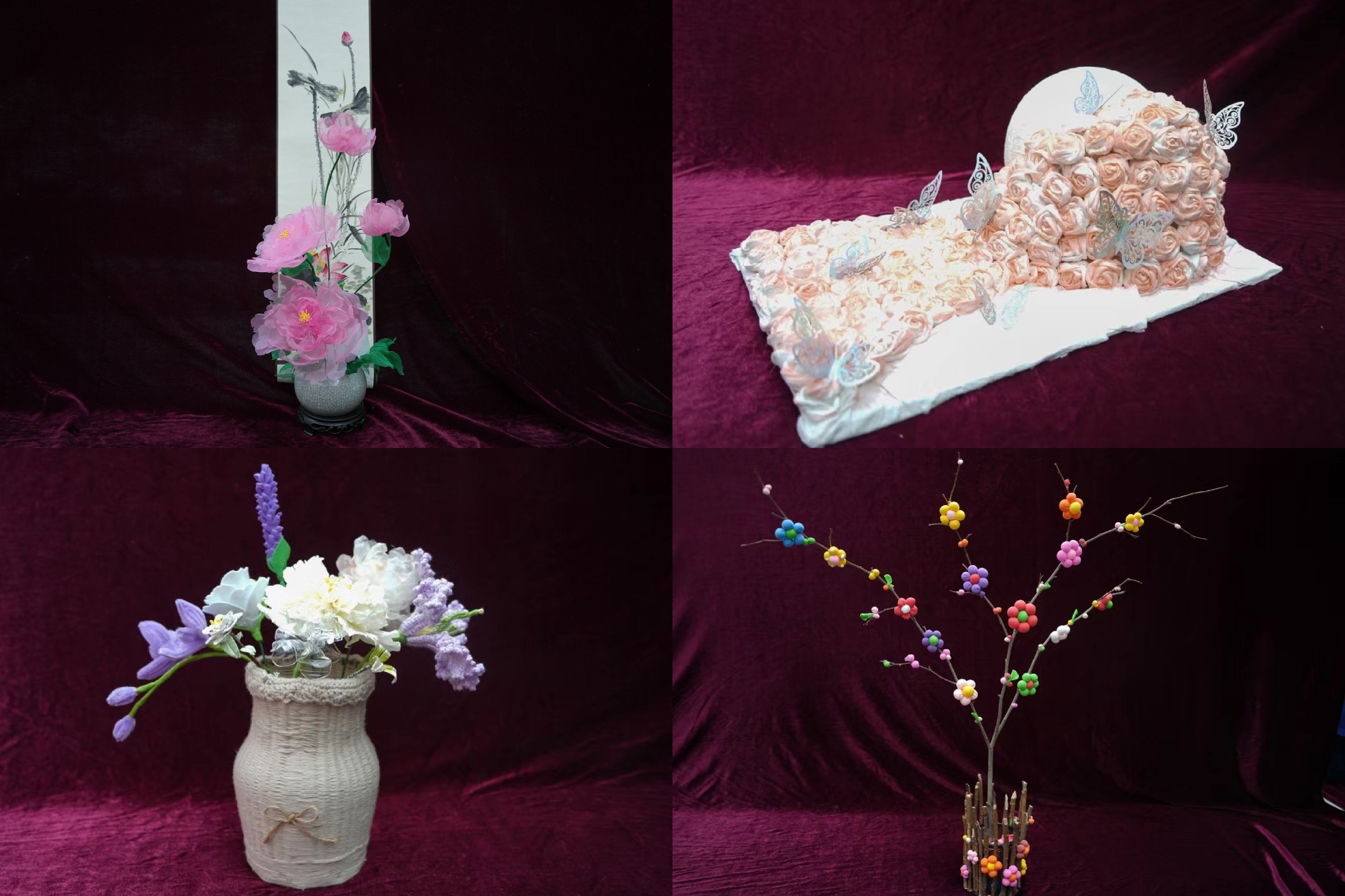 本次展览作品为2023级部分本、专科学生在《劳动通论》课程专题三“马克思劳动价值论与劳动中常见的经济现象”的课程作业,作品以“劳动创造价值”为主题,体验创意插花,以小组为单位协作完成。同学们在作品创作过程中充分展现了巧思妙想的劳动创新精神和群策群力的团队协作意识,通过作品表达了对美好生活的憧憬。