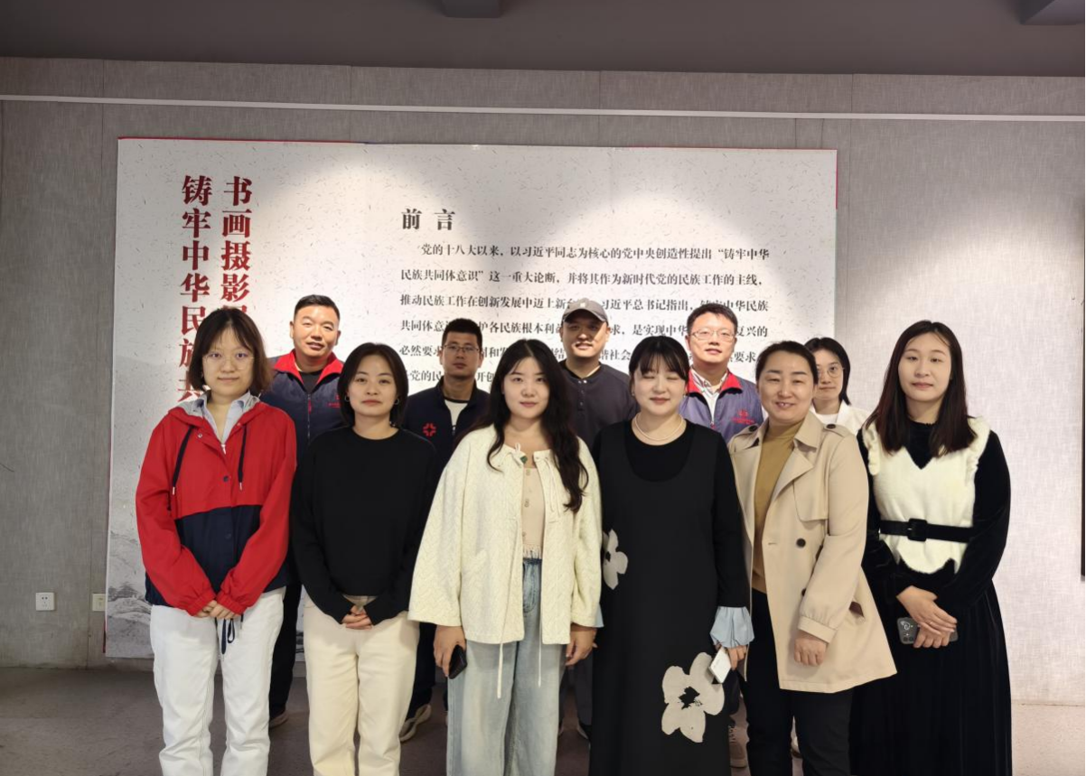 为深入学习宣传贯彻习近平总书记关于加强和改进民族工作的重要思想,切实加强铸牢中华民族共同体意识宣传教育,持续增进全校师生对民族文化的认识与理解,培养学生文化自信,自觉维护民族团结,2024 年 10 月 16 日上午,由党委统战部主办、艺术学院承办的“铸牢中华民族共同体意识”主题书画摄影展在我校艺术大楼三楼展厅正式开展,学务处党总支积极组织教职员工前往参观,开展实践活动。