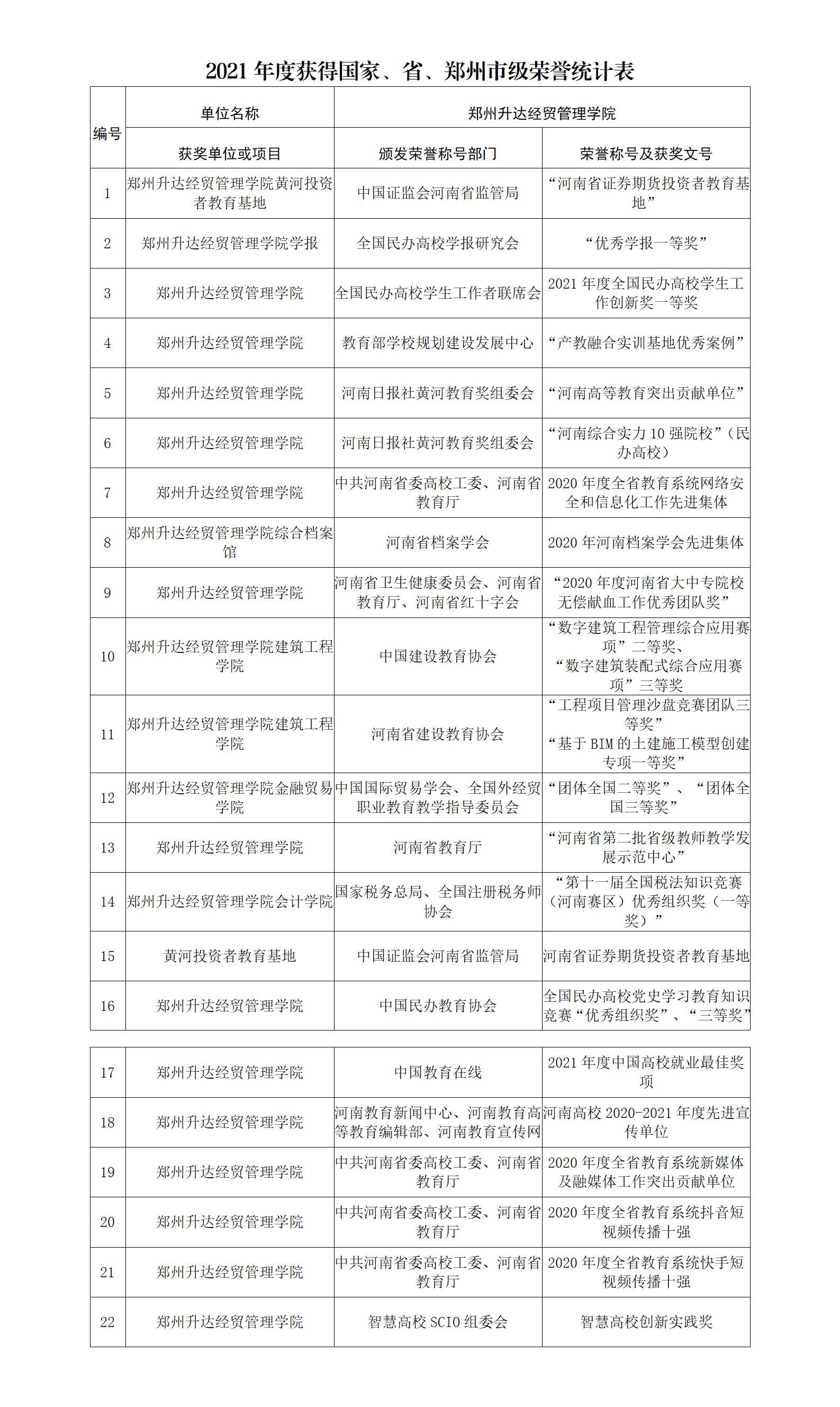学校近年获得主要荣誉情况一览表