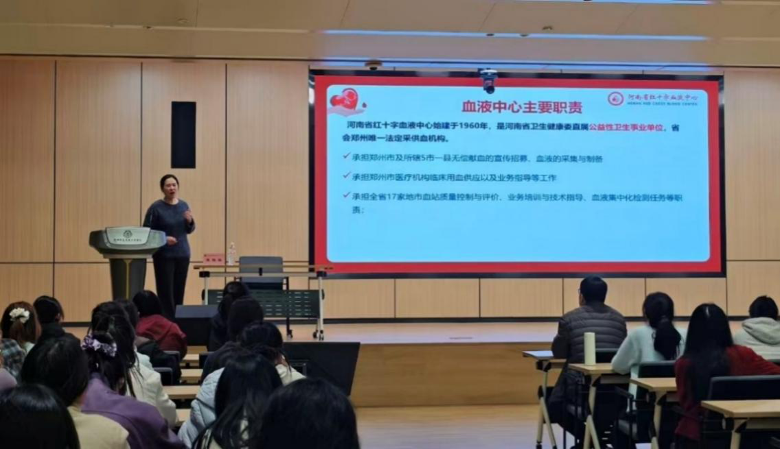 活动前夕,河南省红十字血液中心无偿献血招募专班办公室主任、献血宣传招募科负责人李俊英莅校为志愿者和工作人员做“献血,点亮生命之光”知识科普讲座。分别从血液的基础知识、无偿献血的基本知识、献血者优待政策和献血知识问答与互动等四个方面进行讲解。