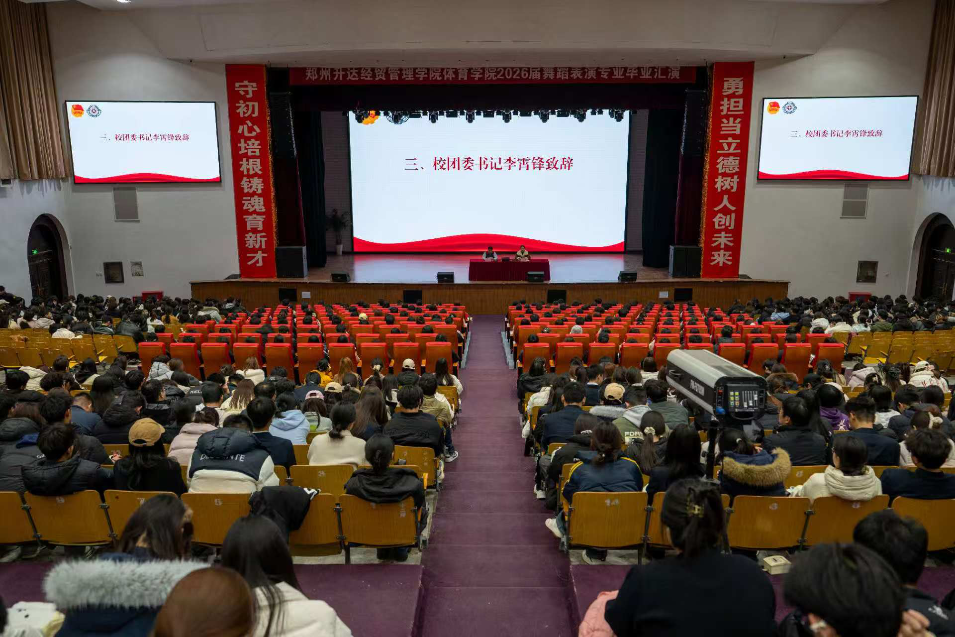 为深学笃行习近平新时代中国特色社会主义思想,全面贯彻党的二十届四中全会精神,夯实共青团为党育人的政治责任,11月18日晚,2025-2026学年度第一学期团校开班仪式在思源会馆隆重举行。校团委书记李霄锋出席仪式,马克思主义学院院长程明欣教授受邀参加仪式,青马工程“力行班”学员、“艺文实验班”学员、2025级基层团支部骨干、拟推荐发展的入团积极分子等1075名学员参加仪式。开班仪式由校团委组织部部长张思昱主持。