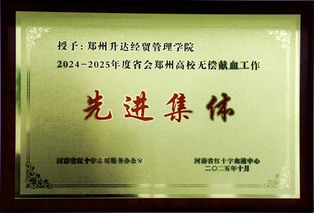 近日,河南省红十字志愿服务办公室、河南省红十字血液中心联合发布表扬通报,我校荣获2024-2025年度省会郑州高校无偿献血工作“先进集体”称号。这一荣誉是对我校长期以来高度重视并扎实推进无偿献血工作,积极履行社会责任,弘扬奉献精神,取得成效的充分肯定。