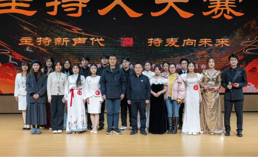 赛后,全体参赛选手、评委及工作人员合影留念,为本次赛事画上圆满句号。本次大赛以语言为载体,搭建起展现学生综合素质的优质平台,参赛选手凭借扎实功底与出色舞台表现力,传递青春心声、诠释主持热爱,充分展现了当代大学生积极向上的精神风貌与逐梦奋进的昂扬姿态。大赛的成功举办,既丰富了校园文化内涵,更为我校校园文化建设注入了新的生机与活力。