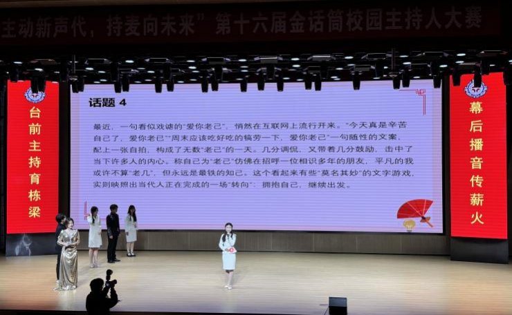 模拟主持环节聚焦实战能力,选手们围绕体育解说、新闻播报、红毯签售等真实场景创作,或温情传递暖心故事,或铿锵解读热点事件,扎实的语言功底与精准的场景适配能力赢得阵阵掌声。