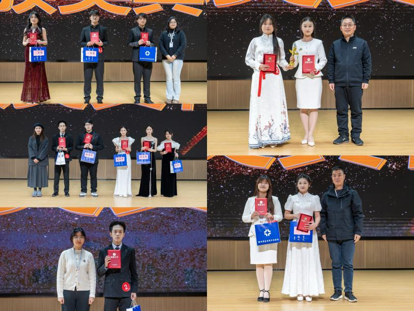 经过近两个小时的激烈角逐,大赛评选结果正式出炉,最终诞生一等奖2 名、二等奖 2 名、三等奖 3 名、优秀奖 5 名及最佳人气奖 1 名。作为我校校园文化的重要品牌活动,“金话筒” 校园主持人大赛不仅为怀揣主持梦想的学子搭建了展示自我的专业舞台,更在以赛育人的实践中,培育了一批兼具出色语言表达能力与深刻思辨素养的青年人才。