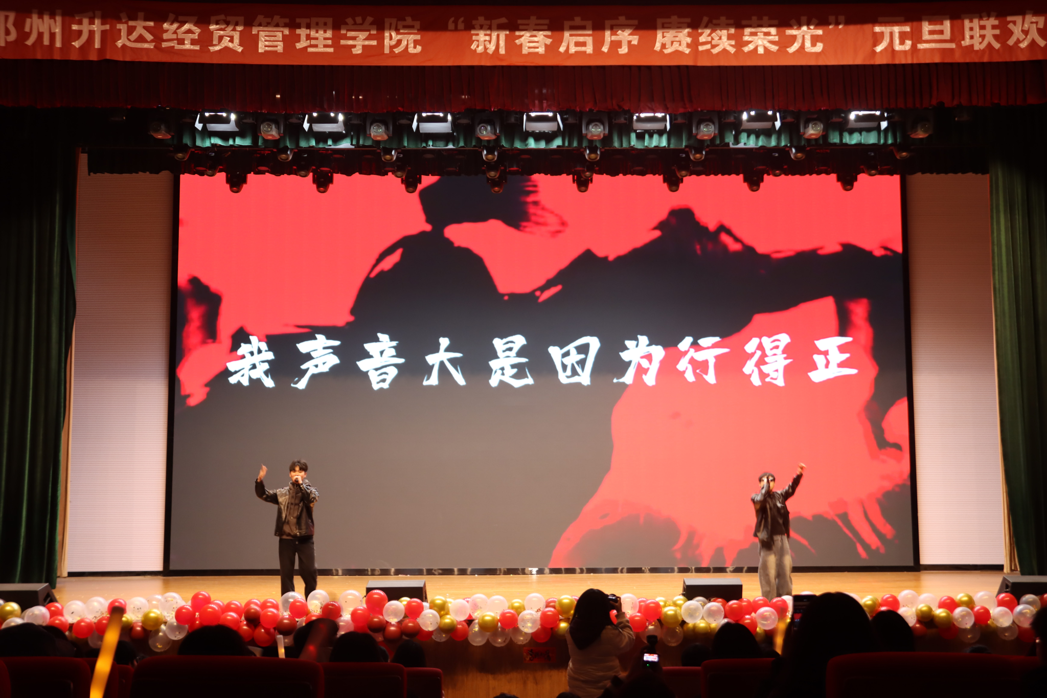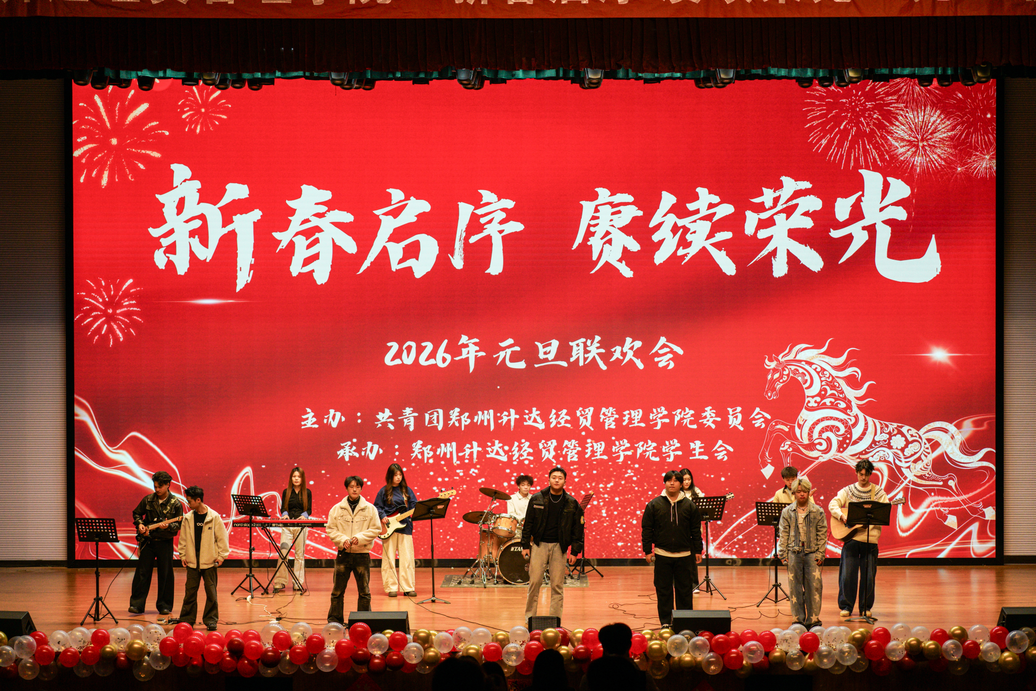 为深入推进社会主义核心价值观和中华优秀传统文化教育,引导团员学生传承弘扬中华传统节日文化,同时鼓励团员学生以饱满状态迎接新年崭新征程,以积极向上心态做好期末复习和考试工作。12月26日下午,我校在思源会馆举办2026年“新春启序,赓续荣光”元旦联欢会,两千余名师生共赴新年之约。
