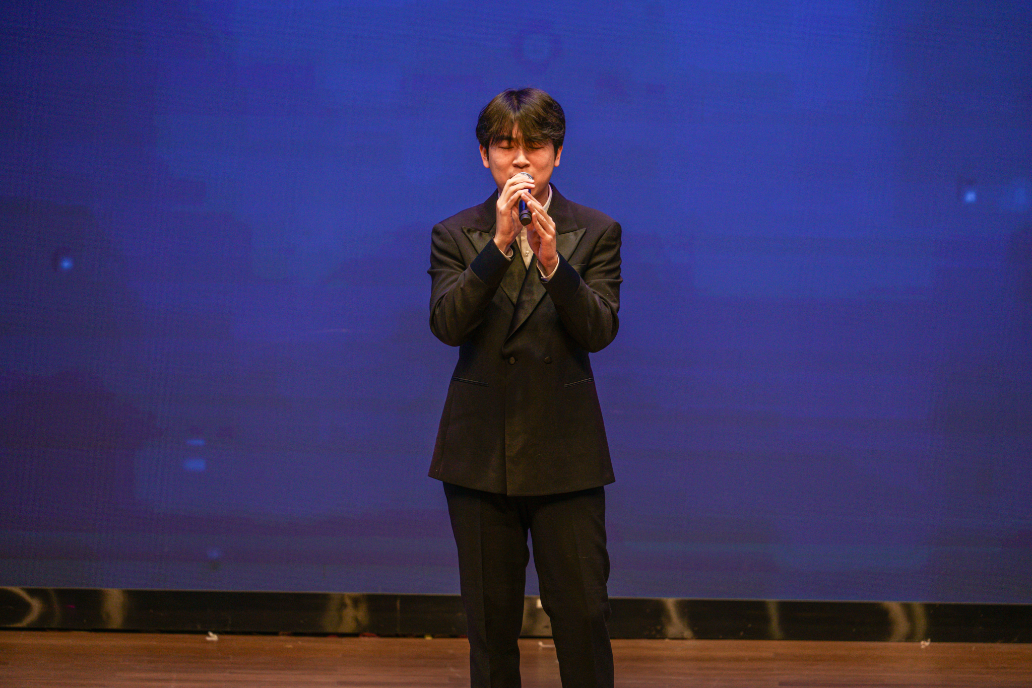艺术学院吴其隆带来独唱《裹着心的光》,清澈而富有穿透力的歌声中满含坚持与希望的力量,旋律婉转间传递出不馁的信念,直抵人心;管理学院李宇洋演唱的《天后》则以嘹亮高亢的嗓音和自信从容的舞台表现,将歌曲中的深情张力展现得淋漓尽致,赢得台下阵阵掌声。