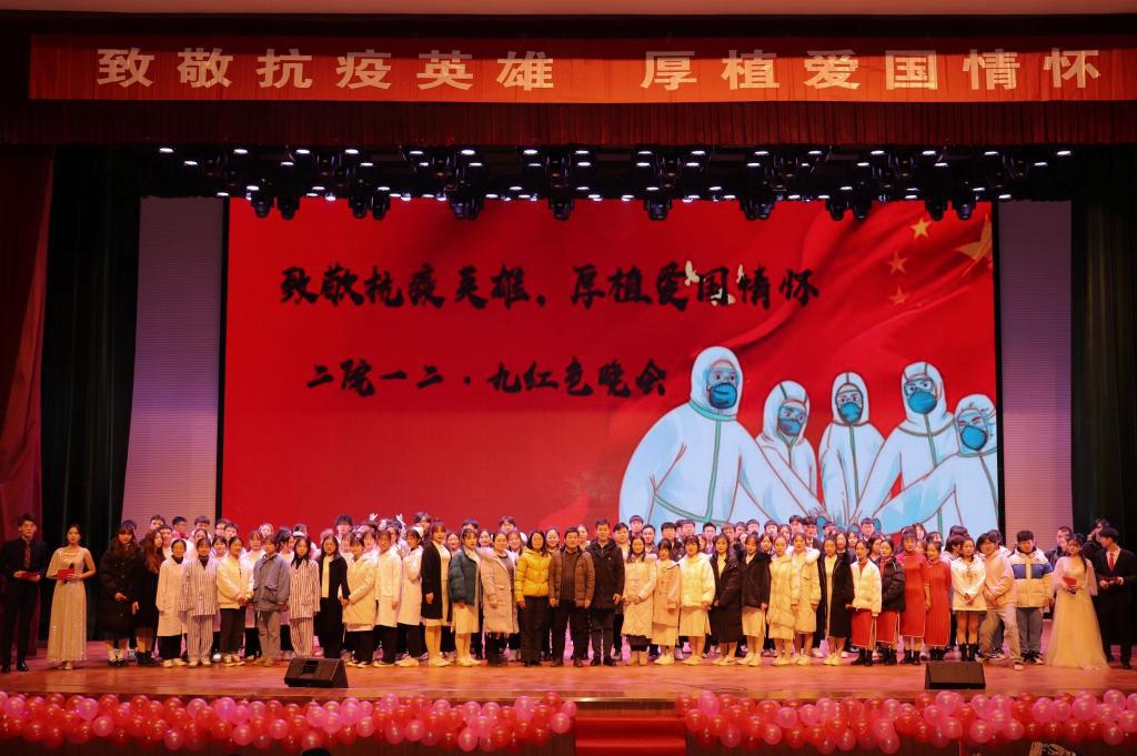 12月3日晚18:30-20:00外国语学院团委与建筑工程学院共同举办的“致敬抗疫英雄,厚植爱国情怀”铭记一二·九精神红色晚会在思源会馆隆重举行。诗朗诵《祖国啊,我亲爱的祖国》学子们以饱满真挚的情感、铿锵有力的节奏诵出对祖国母亲的爱,话剧《战火中的大学生》又带我们回到了那个激昂的年代,大学生们纷纷汇集到新华门前,用一声声呐喊为中华民族的团结贡献自己的力量;歌曲《我和我的祖国》、《我的祖国》唱出了学子心中蕴藏的那种对祖国母亲最炽热、最真挚、最高尚的情感。歌曲《平凡天使》、《今夜晚安》深情讴歌了医务工作者忠诚、高尚、朴实的英雄情怀,表达了对医务人员的敬仰和战胜疫情的坚定信念。