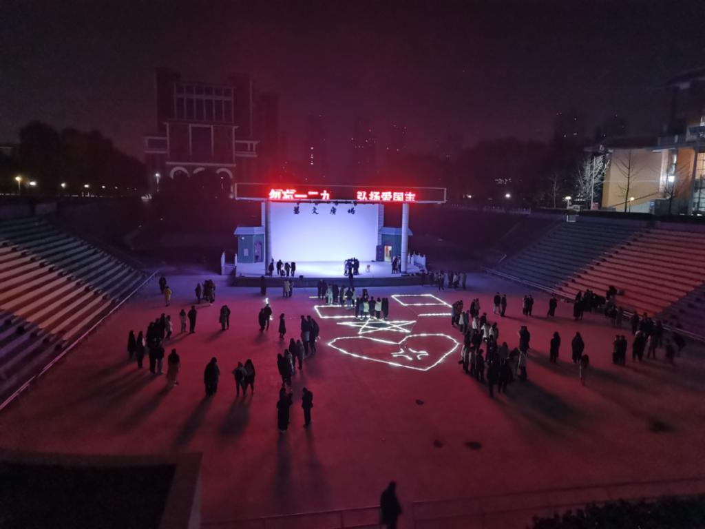 2020年12月3日下午3点,管理学院团委在艺文广场举办“勿忘一二·九,弘扬爱国志”主题活动。“一二·九”爱国接力跑在声势浩大的队伍中拉开序幕,青年大学生肩抗五星红旗,步履坚定,口号响亮,表达了昂扬爱国志。晚间,团学骨干在艺文广场开展“勿忘一二·九,弘扬爱国志”灯展活动,表达浓浓爱国情。