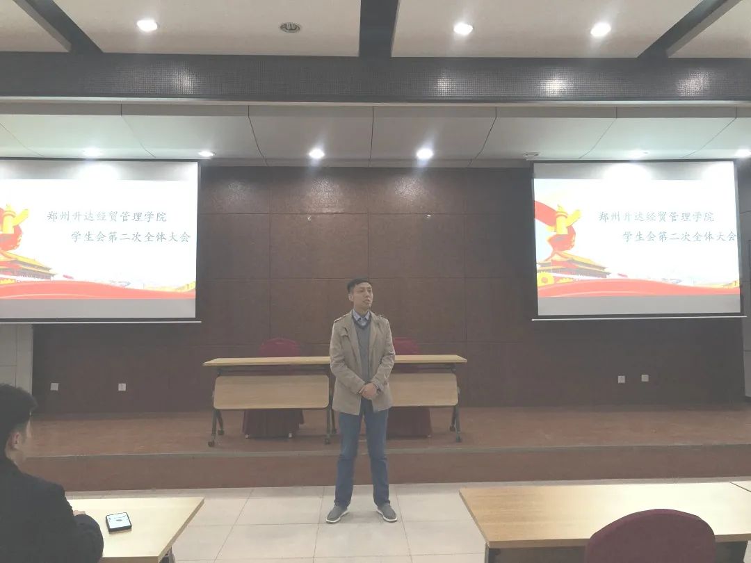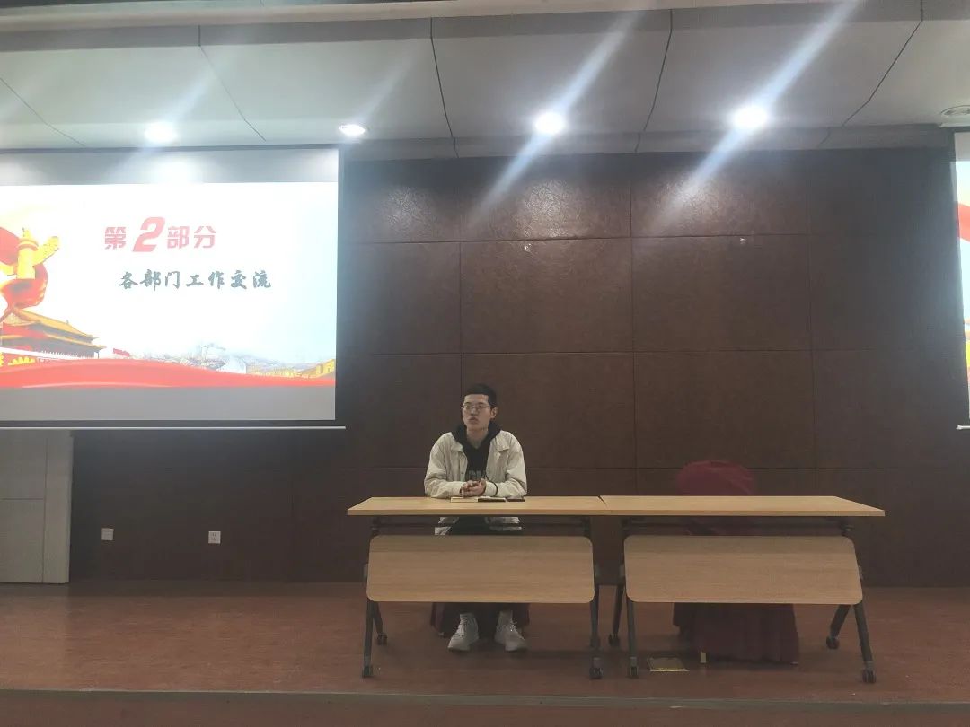 2021年4月20日晚,校学生会在博新四楼会议厅召开第二次全体会议。校团委副书记、学生会秘书长李松涛老师,校学生会执行主席耿海釜、校学生会主席团、各职能部门负责人及全体学生会志愿者、学院学生代表参加本次会议。