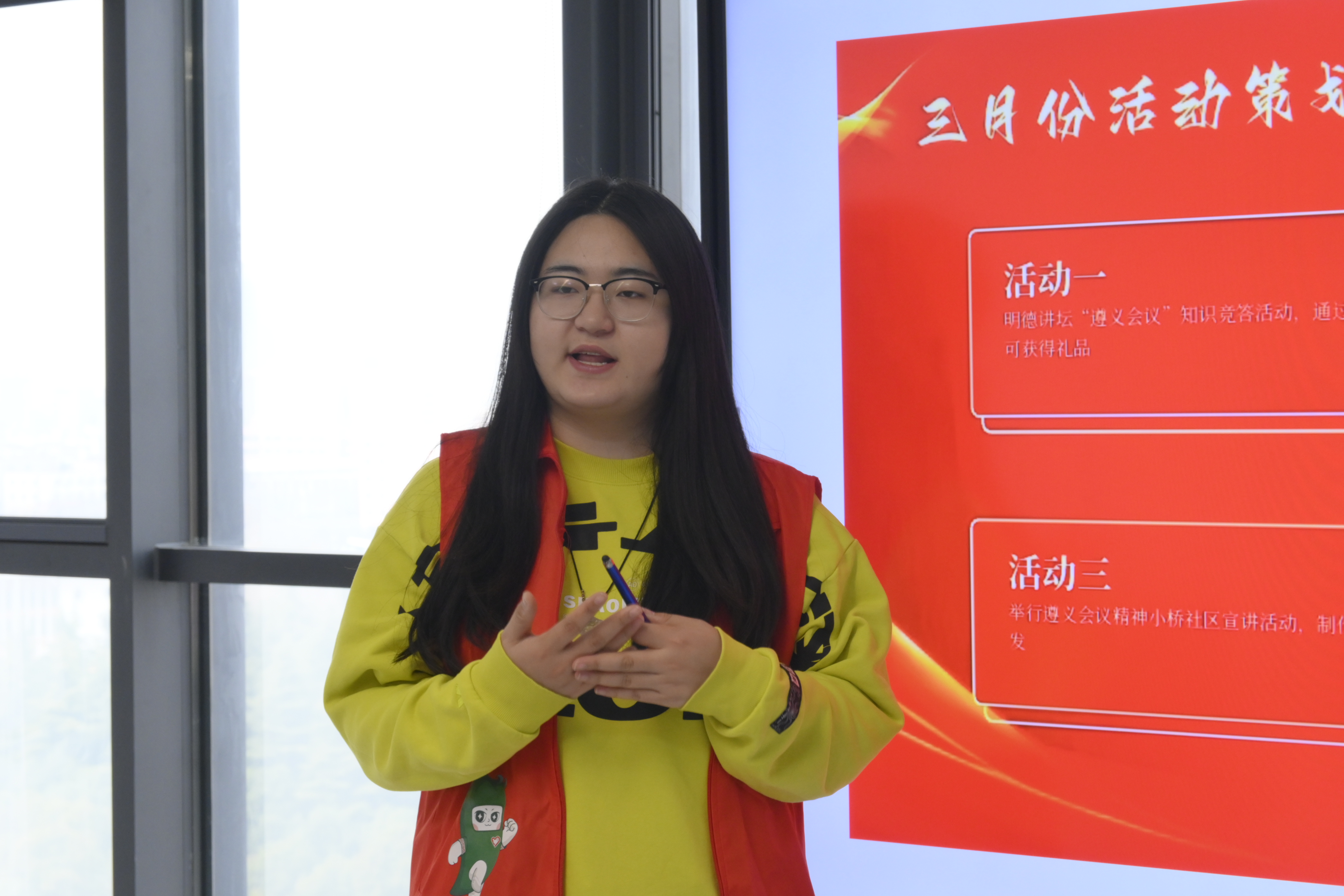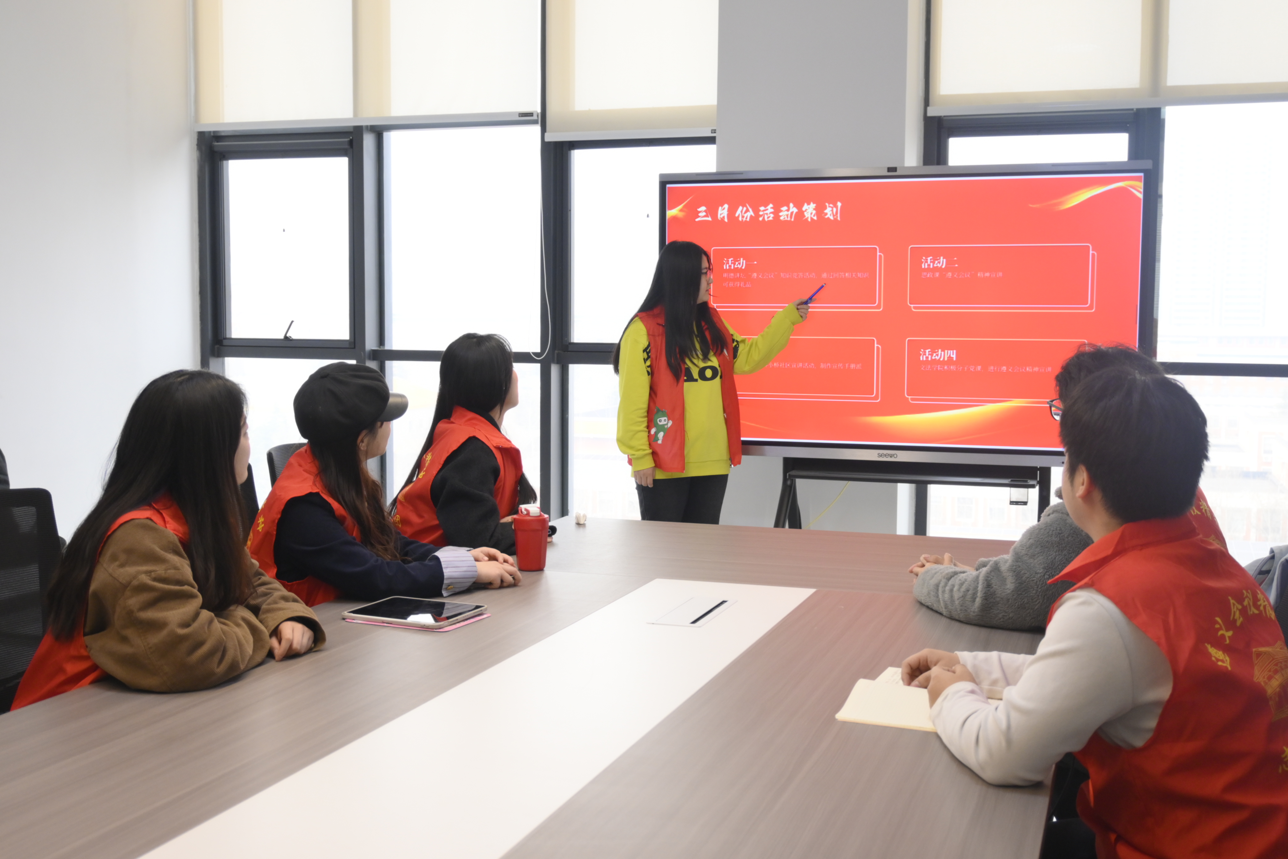 最后,宣讲团制定了三月份的详细活动计划。一方面,优化内容设计,根据不同年龄段学生的认知水平,分层设计遵义会议精神宣讲内容,确保精准传达遵义会议精神文化。另一方面,要创新宣讲形式,除传统讲解外,增设线下活动,提升学生和社区人员的参与度。此外,宣讲团还计划扩大宣讲范围,将红色文化带到更多地方,让遵义会议精神在人们心中生根发芽。