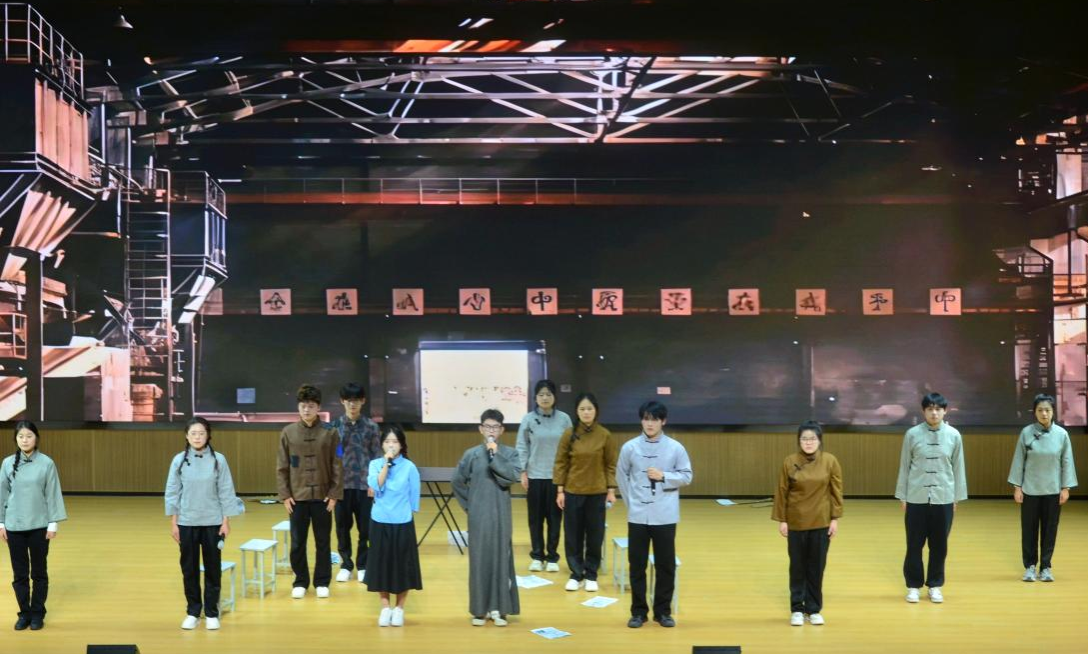 暖场节目结束后,晚会正式拉开帷幕。主持人详细介绍了“一二・九”运动的历史背景、时代意义及晚会筹备历程,真挚的话语瞬间点燃现场观众的爱国热情。第一幕“回顾历史、缅怀先烈”中,学生会办公室带来的朗诵《1935的呐喊》字字铿锵、句句有力,仿佛将观众带回九十年前北平街头的示威现场,再现了爱国学子为救亡图存振臂高呼、奋勇前行的壮阔场景;院党建中心与社团管理部联合呈现的话剧《觉醒》,以生动的剧情编排、饱满的情感演绎,还原了百年前青年冲破黑暗桎梏、追寻真理之光的初心与决心;组织部与体育部合作的情景剧《错位时空》,以创意化的叙事形式实现了当代青年与“一二・九”时期青年的跨时空对话,通过场景切换与情感共鸣,生动诠释了“错位的是时空,不变的是初心”的家国情怀;全体团学干部共同演绎的大合唱《我和我的祖国》,以磅礴的气势、真挚的情感点燃全场,旋律响起时,台下观众自发跟随合唱,歌声响彻报告厅,化作对祖国最诚挚的礼赞。舞台上灯光璀璨,台下掌声雷动,爱国之情、报国之志在歌声中凝聚升华,细腻的表演赢得现场阵阵掌声。