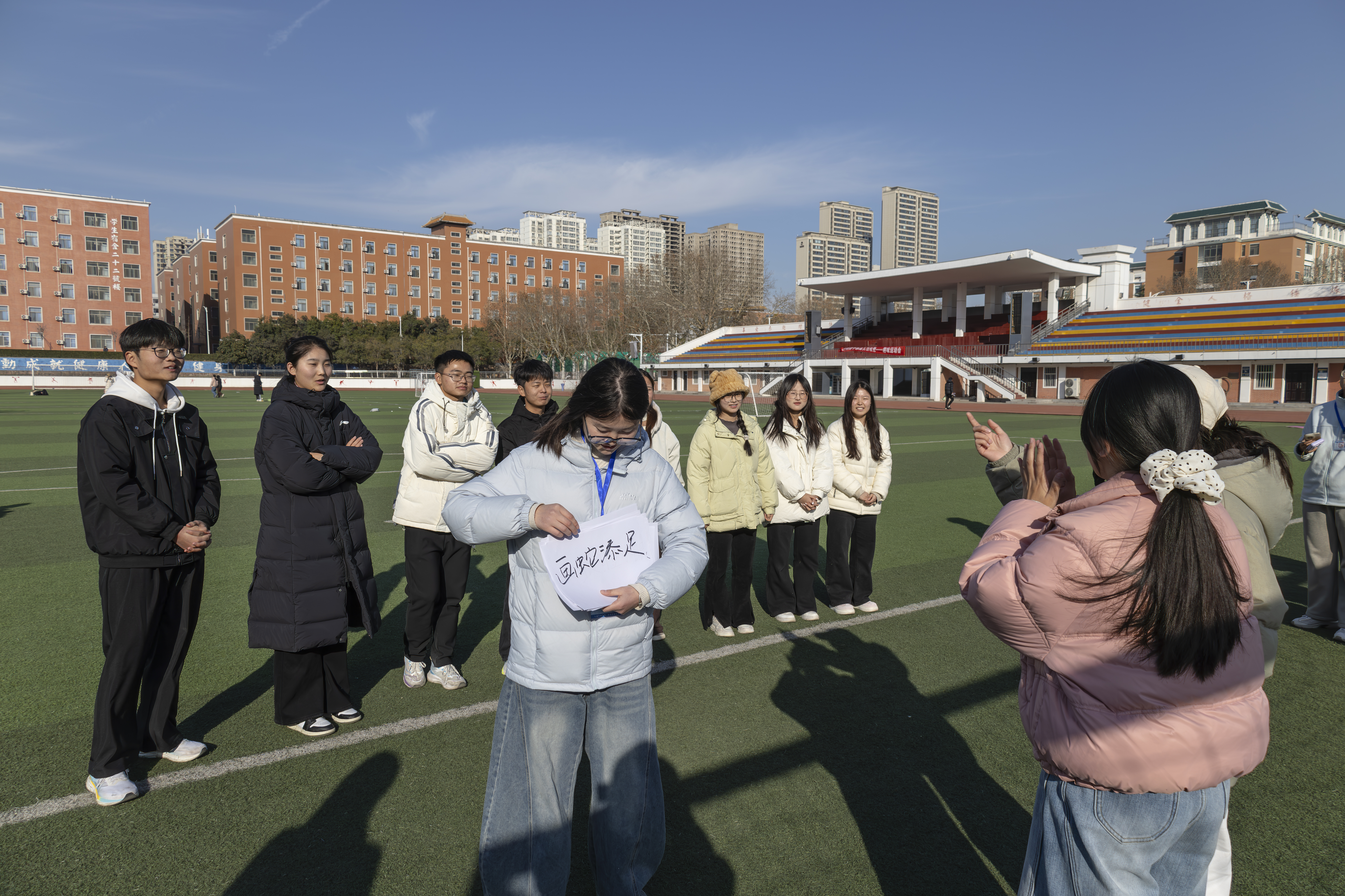 为弘扬并传承一二·九运动中青年学子的爱国热忱与团结奋进精神,进一步增强团干部队伍的凝聚力,文法学院团委于12月4日下午2时在学校运动场举行纪念一二·九运动暨团干部成长训练营之趣味运动会。本次活动由文法学院团委学生会主办,团委组织部与网络宣传部联合承办。文法学院党委副书记郑玲玲、学院团委副书记于晔以及学院团委学生会主席团和全院团支部书记参加本次活动。