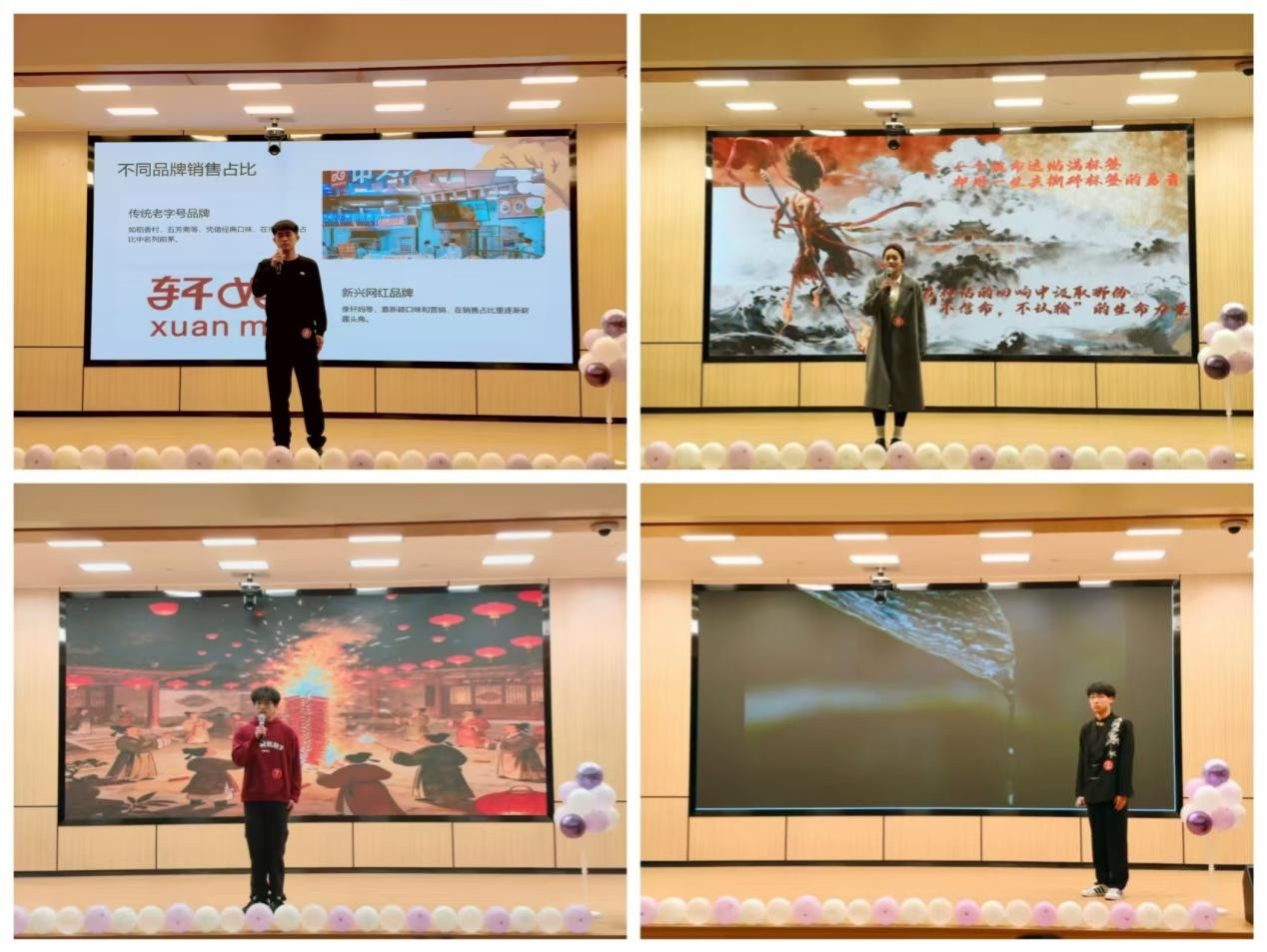活动伊始,由主持人讲解了本次大赛的比赛流程和评分细则。随后十位进入决赛的选手逐一进行自我介绍、主持表演及才艺展示,紧接着评委老师现场就参赛选手的表现进行打分。在等待结果之余,第九届主持队副队长谢觐雯带来了精彩的配音表演。此外,第九届主持队队长朱君毅也代表主持队欢迎新成员的到来,叮嘱同学们用心主持、携手发扬会计学院主持队的优良传统。最后根据十位选手的得分情况进行排名现场进行了颁奖,由汤振全,徐梦露,周晓梦以及陈刚老师,分别为获得本次比赛的优秀奖、三等奖、二等奖和一等奖的同学颁发荣誉证书及奖品。