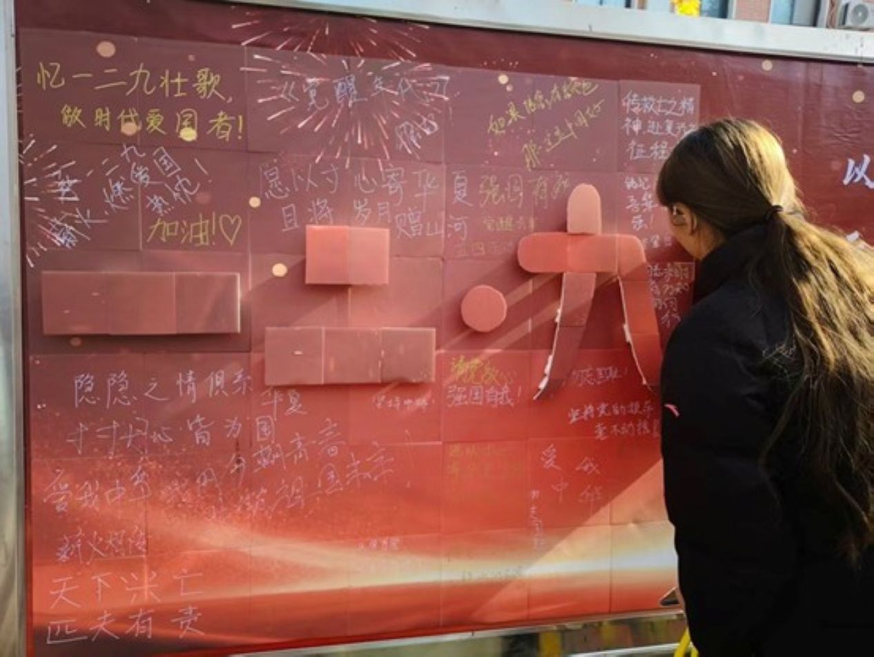 此次活动分为三个板块:在“以拼图汇心声,纪念‘—二·九’运动留言”活动中,用拼图块代替传统留言板,参与者在一块块拼图上写下自己的感悟和想法;在“爱国主义教育飞行棋,你我一起来答题”活动板块中,参与者通过掷骰子答题小游戏的形式,一步一步从起点走到终点,每一步都要完成相应的任务,恰似革命先辈般一步一步走向革命胜利;在“绘手账、传精神、担使命——纪念一二·九运动集体手账”板块中,各位参与者通过在集体手账上书写绘画,描绘出自己了解的革命历史和爱国诗词。这一系列活动在铭记“一二·九”精神的同时又进一步增强了参与者的爱国热情。