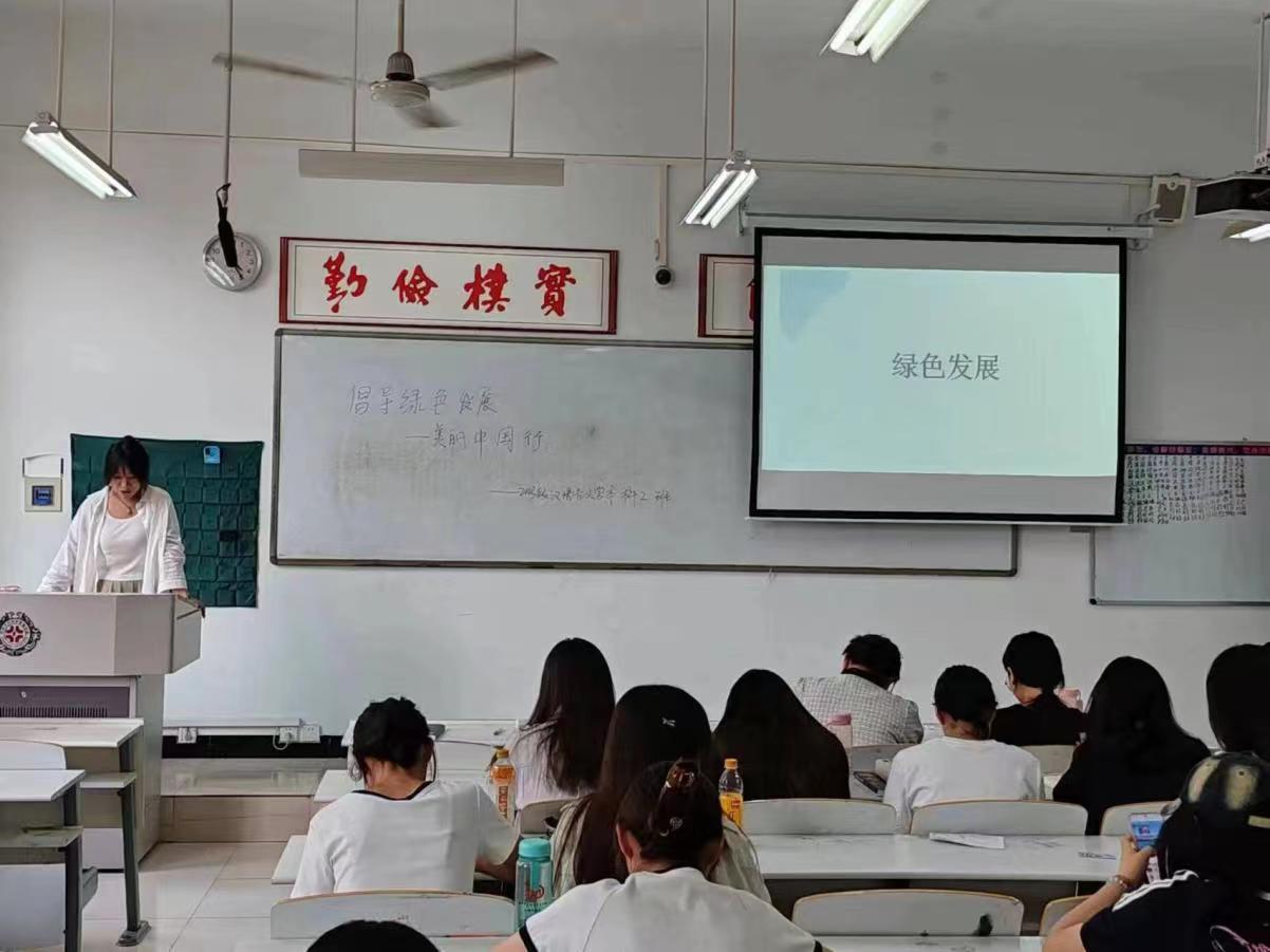 为进一步加强生态文明宣传教育,引导广大团员牢固树立绿水青山就是金山银山的理念。6月12日下午5点,由2023级汉语言文学本科2班团支部组织的“倡导绿色发展——美丽中国青春行”主题团日活动在道镕楼310教室开展。活动由团支书智静怡主持,全体团员到场学习。