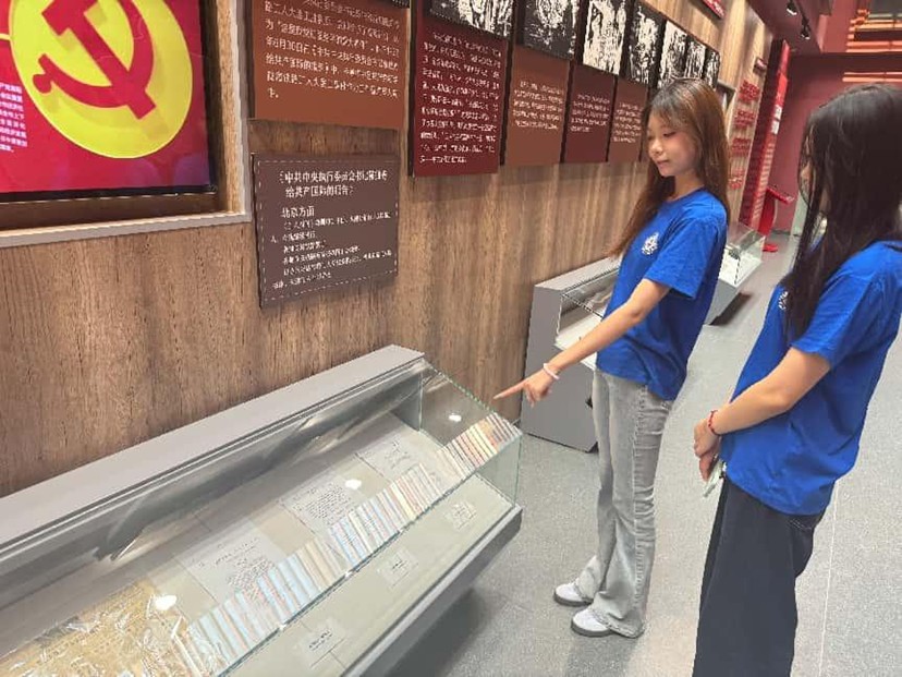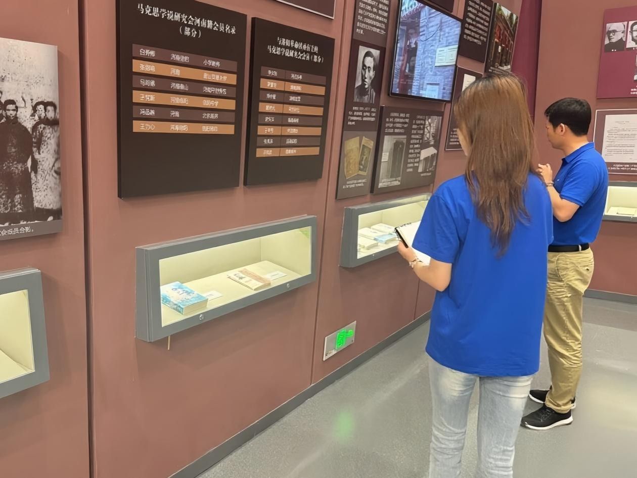 7 月 25 日,实践团抵达中共洛阳组诞生地纪念馆,红色之旅就此开启。甫入展馆,“真理光芒点亮中原” 展区便以丰富的实物与场景,将众人拉入百年前的峥嵘岁月:上海商人罢市的老照片里,能看见民众反抗压迫的坚毅神情;工人运动的珍贵文献中,藏着早期革命者唤醒民众的赤诚初心。随着讲解员缓缓讲述 “先辈们在密不透风的黑暗里传播马克思主义、在刀光剑影中组织工人斗争” 的故事,汉语言专业学生张梓涵难掩触动:“课本上‘中共洛阳组是河南第一个党组织’的文字,此刻变成了有温度的历史。先辈们冒着生命危险播撒信仰火种的执着,让我真正触摸到了‘初心’的重量。”