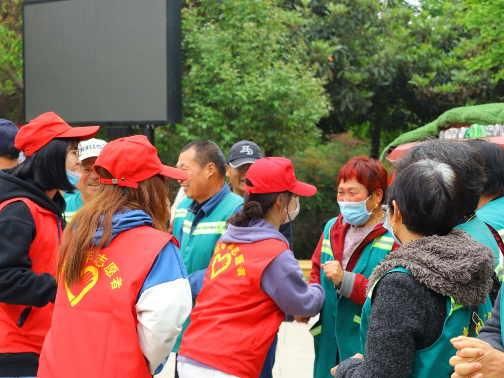 4月25日上午,由校团委主办、校青年志愿者协会承办的“情系环卫工,青春送温暖”活动在新郑市龙湖镇怡心园举行。教育园区市政环保局办公室张磊主任、校团委副书记李松涛、新郑市人民医院王霞主任、校青年志愿者协会成员参加本次活动。