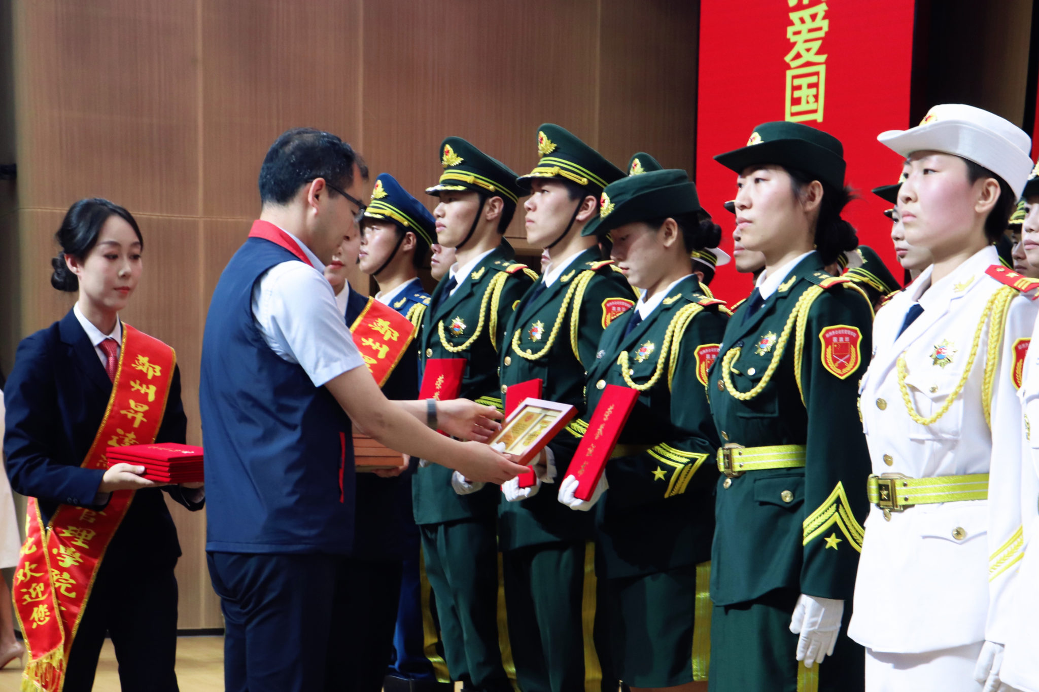 登封校区党工委书记沈定军为退队队员颁发“优秀国旗卫士”荣誉证书及纪念奖章,表彰他们的辛勤付出。