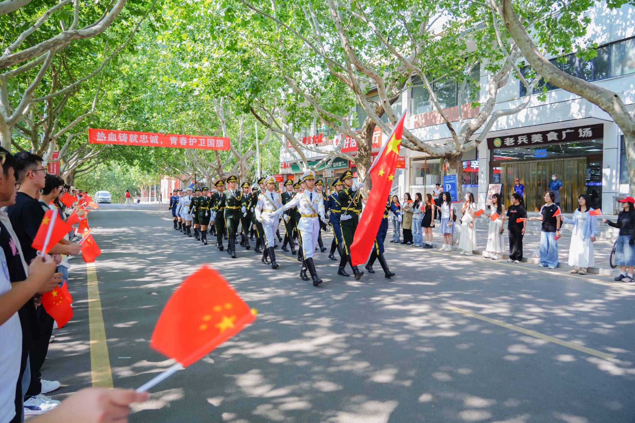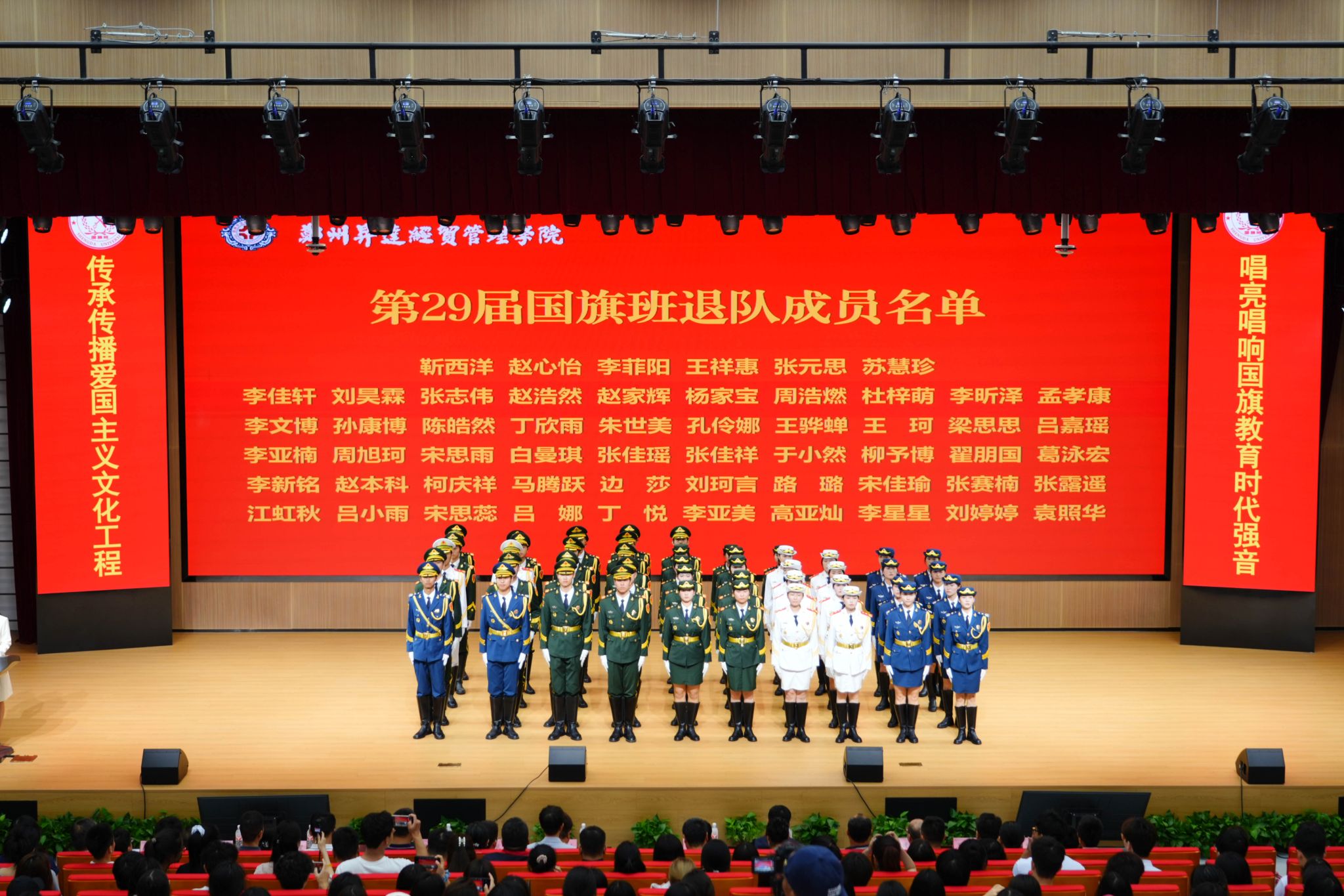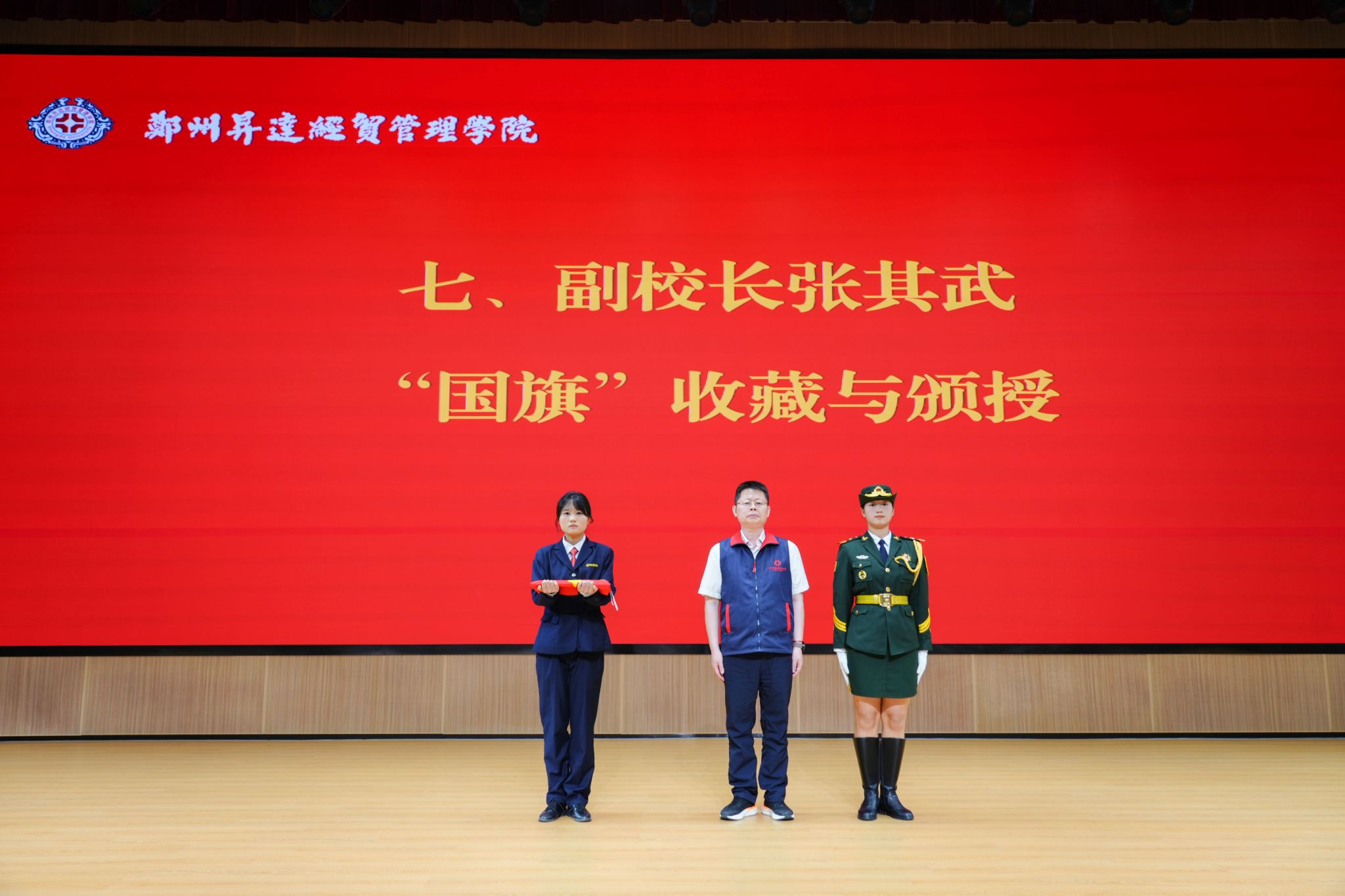 5月28日上午,我校“传承传播爱国主义文化工程”2025年“国旗传承仪式”隆重举行。董事长王新奇,副校长张其武,登封校区党工委书记沈定军等校领导出席仪式;董事会办公室、党委办公室、学务处、党委宣传部、融媒体中心、校团委、校关工委、马克思主义学院等主要负责人,各学院党委书记、团委书记,及全校两千余名师生代表参加仪式;天安门广场三军仪仗队原海军护旗手、国旗班校外指导员曾嵘受邀参加仪式。