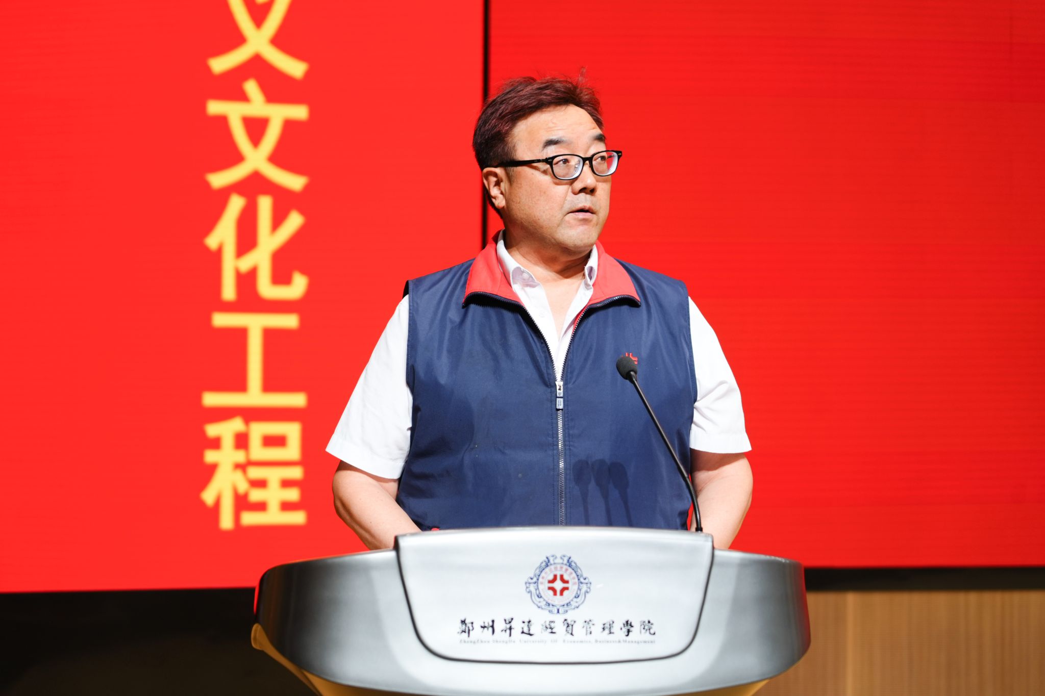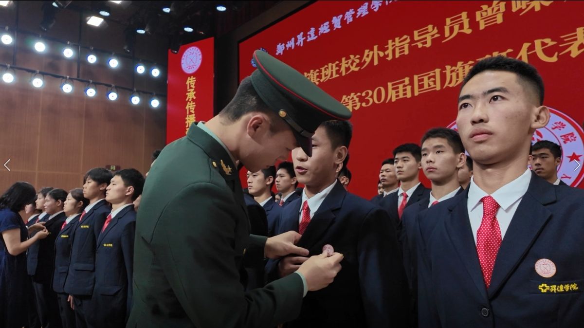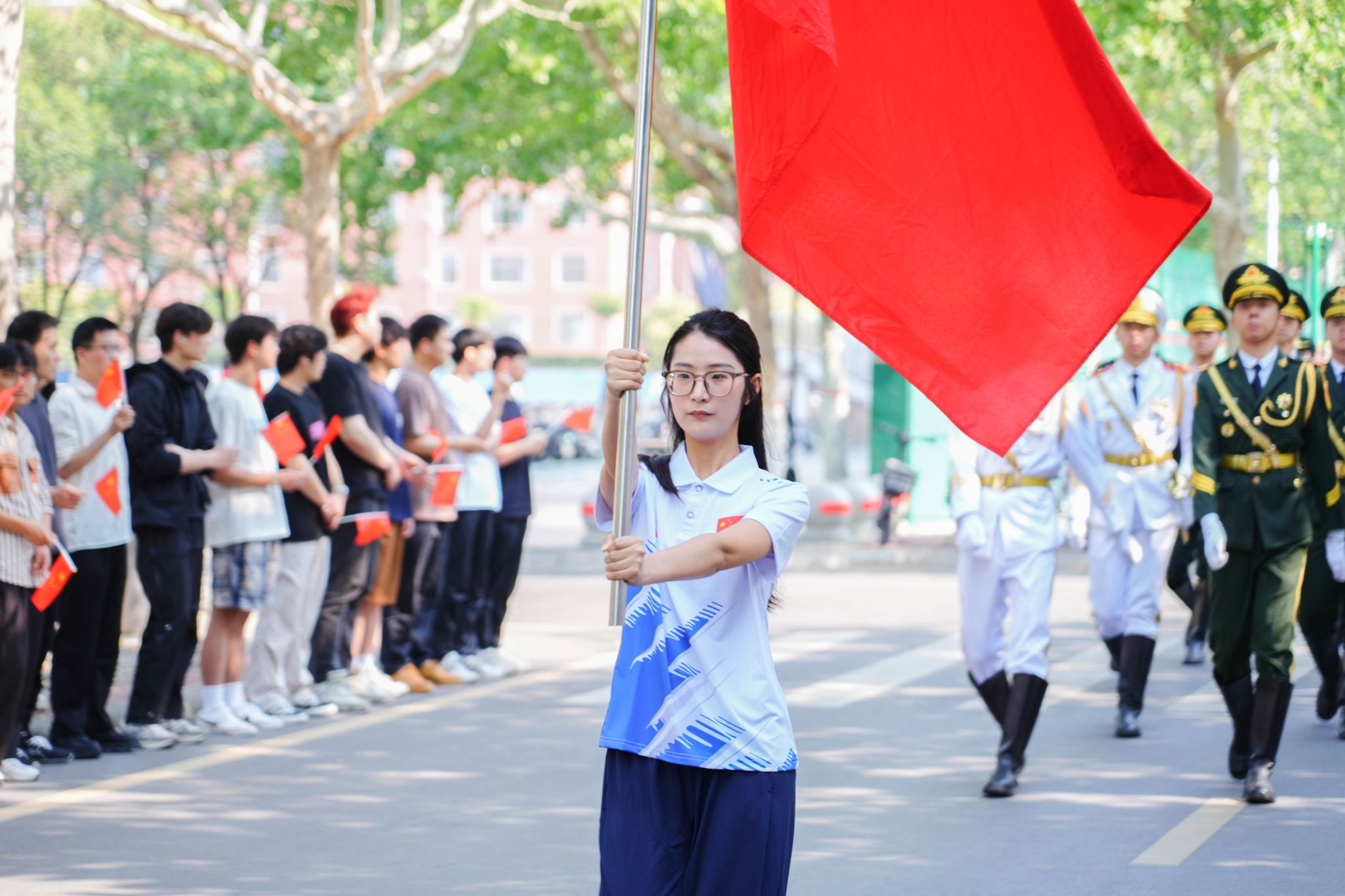 5月28日上午,我校“传承传播爱国主义文化工程”2025年“国旗传承仪式”隆重举行。董事长王新奇,副校长张其武,登封校区党工委书记沈定军等校领导出席仪式;董事会办公室、党委办公室、学务处、党委宣传部、融媒体中心、校团委、校关工委、马克思主义学院等主要负责人,各学院党委书记、团委书记,及全校两千余名师生代表参加仪式;天安门广场三军仪仗队原海军护旗手、国旗班校外指导员曾嵘受邀参加仪式。
