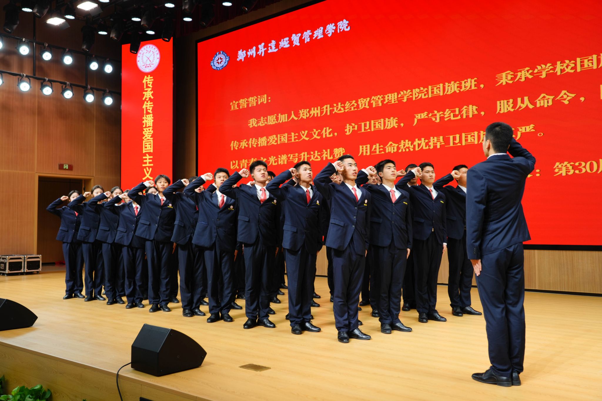 第30届国旗班全体队员庄严宣誓,表达了“秉承学校国旗教育精神,传承传播爱国主义文化,护卫国旗,严守纪律,服从命令,团结互助,以青春之光谱写升达礼赞,用生命热忱捍卫国旗尊严”的决心。