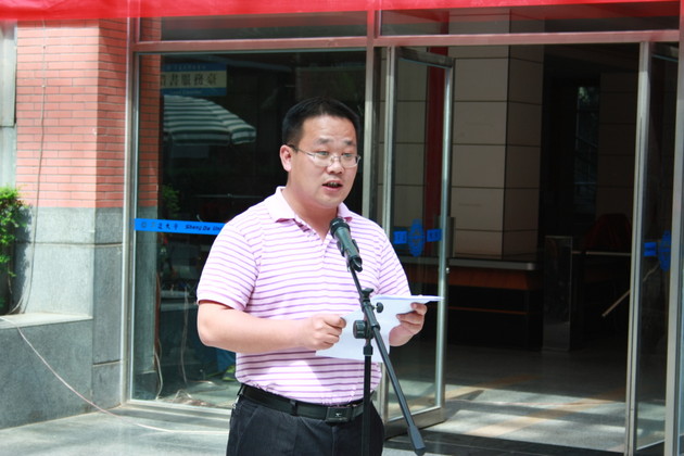 王红晓书记致词,他对各位书画家表示欢迎,对升光书画社在书画艺术上取得的成绩表示肯定,希望大家再接再厉作出更大贡献。