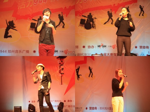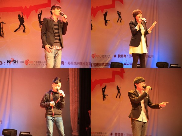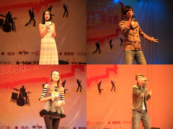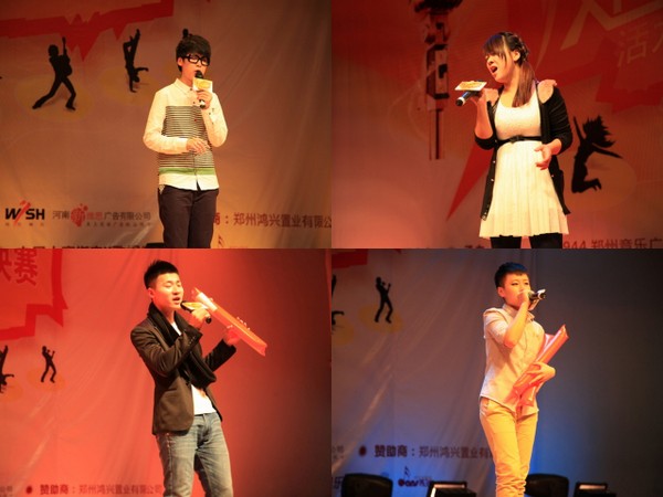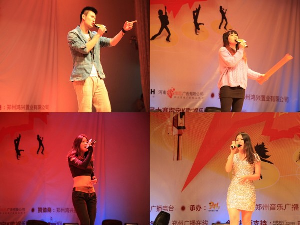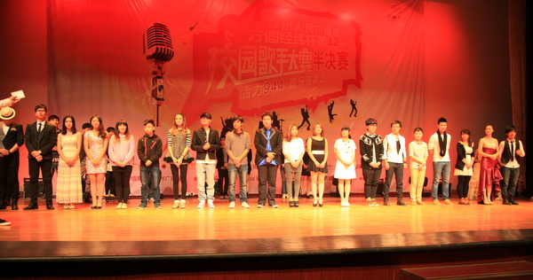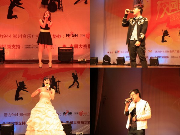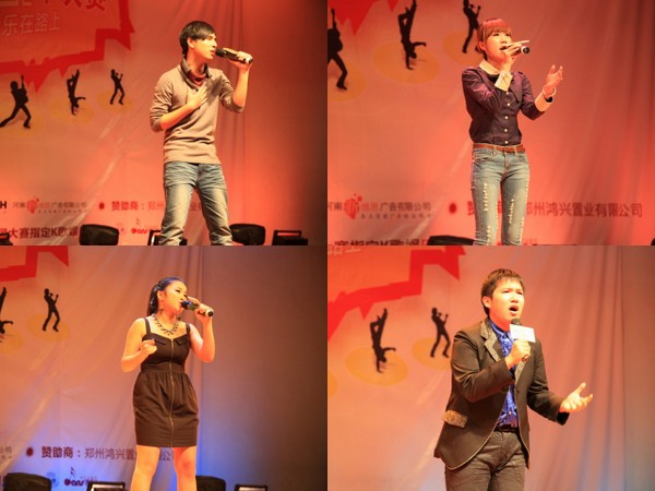 大赛在两位主持人幽默的对白中拉开了帷幕。来自不同高校的40位选手相继登台,献出精彩的歌曲。我院选手毛迎慧的《失恋无罪》深情感人、酣畅淋漓,毛蕊蕊的《做我自己》自信洋溢,率真个性 ,贠田甜的一曲《太委屈》温柔细腻、沁人肺腑,博得满堂喝彩;郑州大学西亚斯国际学院选手的《小镇姑娘》委婉清秀;郑州信息科技职业学院的《一天到晚游泳的鱼》婉转流畅;郑州铁路职业技术学院选手带来的《想你的夜》激情高亢、音域开阔,全场高潮迭起;河南经贸职业学院的《我是一只小小鸟》轻松欢快;河南教育学院选送的《傻瓜》温柔舒缓;河南大学选送的《后来》醉人心脾;郑州大学献出的《我怀念的》低郁深沉;郑州旅游职业学院选送的《相见恨晚》忧郁伤感;河南农业大学送上的《父亲》真挚感人,将感恩进行到底;郑州科技学院精选的《天亮了》真情流露;黄河科技学院、郑州师范学院等25所学校歌手代表依次登场献唱。
