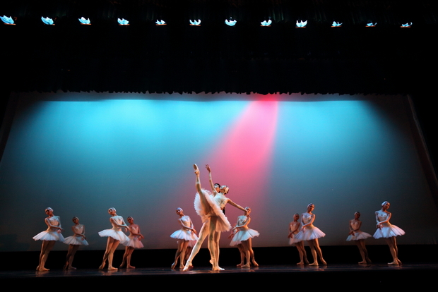 随后,白天鹅的表演者张妍、齐格弗里德王子战裕田与中央芭蕾舞团的演员为大家带来了一部称为永恒的经典的舞蹈——《天鹅湖》,虽然只是第二幕片段,但优美的音乐、纯美无比的童话故事,给观众们带来了无法忘却的心灵震撼。演员闫华龙、胡斯毅等人的《古典男子四人舞》以优雅的舞姿惊艳全场。中央芭蕾舞团充满气质的《卡秋恰》获得阵阵掌声;音乐格调新颖、充满旋律美和戏剧性的《吉赛尔》,充满浪漫主义的《海盗》,诙谐有趣的《过年》,充满现代气息的《向往》等舞蹈,为师生们营造了一个别样的充满欢乐的氛围。《红色娘子军》中《军民联欢》选段的欢快激扬的表演,让全场师生意犹未尽,沉醉在艺术的海洋里。演出在全体演员的《谢幕舞》经典的芭蕾技巧展示中落下帷幕。
