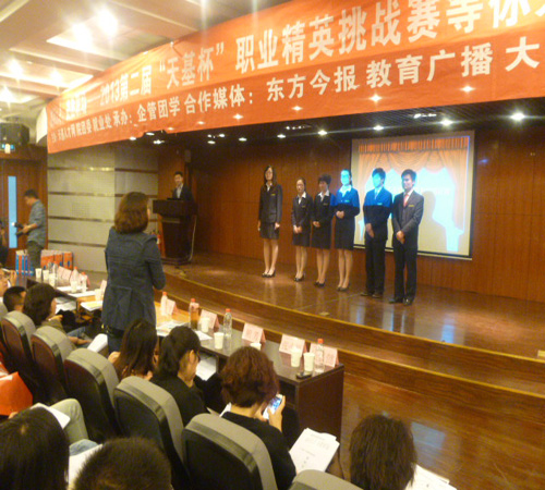 由天基人才网、郑州升达经贸管理学院团委、学院就业处主办,企管系团学会承办的“精英人才,决胜职场”——2013第二届“天基杯”职业精英挑战赛决赛于4月9日下午在外语楼二楼多功能报告厅隆重举行。参加本次大赛邀请嘉宾有院团委副书记胡芳、企管系党总支副书记张小雁老师;本次大赛评委有天基人才网副总经理郭巍,人力资源总监马妮娅以及世界五百强部分企业和部分中原名企的高管。