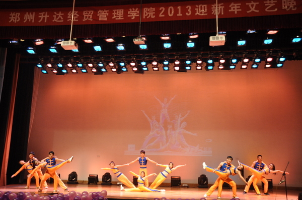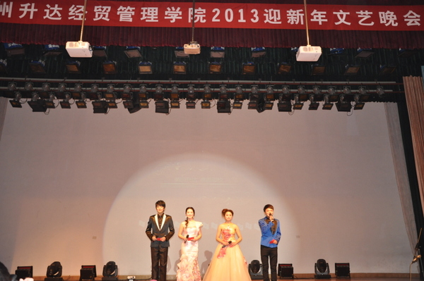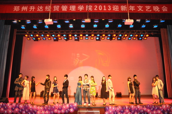 辞旧迎新绘锦程,升达腾飞谱华章。12月20日晚,雪花漫天,思源会馆内灯光璀璨,欢笑满堂,院2013迎新年文艺晚会在这里隆重上演。院党委常务副书记戎庭银,副院长张金安,院办主任朱永恒、院团委书记王红晓等系部主管和我院师生2000余人观看晚会。特邀嘉宾郑州财经成功学院师生一行五十余人也来到了晚会现场。