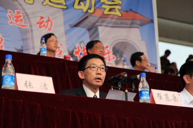 在雄壮的国歌声之后,崔院长致开幕词,他阐述了开展体育运动的重要意义,希望全体运动员顽强拼搏,奋勇争先,赛出水平,赛出风格;希望裁判员恪尽职守,公正裁判;希望全院师生积极参与,全力配合,热情服务,保障安全,共同努力把运动会开成一次隆重热烈、文明有序,安全和谐的体育盛会。