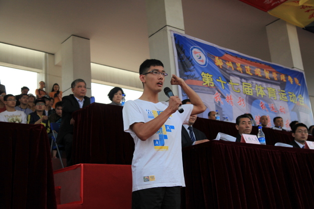 接着,运动员代表周鸿宽和裁判员代表张晓丹分别代表运动员、裁判员宣誓。