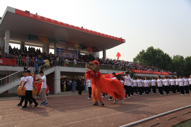 入场式开始,在《运动员进行曲》激情昂扬的节奏中,国旗班、各系方队迈着整齐的步伐依次走过主席台,在主席台前,有的手持气球、花伞,有的手持花环、标语牌,并以舞蹈、武术、团体操、舞狮子、球技等各种独特的表演,展示英姿,展现风采,博得院领导和观众阵阵热烈的掌声。