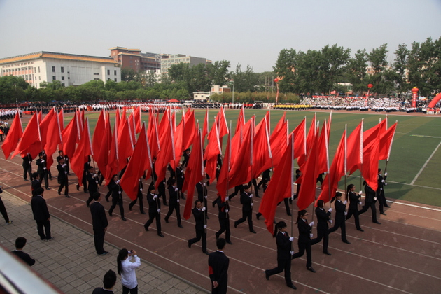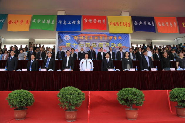 阳光明媚,彩旗飘飘,声乐阵阵,人潮涌动。5月8日上午,我院第17届田径运动会开幕式在体育场盛大举行。董事长王淑芳女士,院长崔慕岳教授,院党委常务副书记戎庭银,副院长张洁、张金安,执行董事王新奇,副院长段丰乐,特邀嘉宾河南省国际标准交谊舞协会会长范新华先生,副会长、郑州市金水区宣传部部长尤谊先生,郑州商业技术学院国际系主任范文博先生与各部门主管、各党总支书记及近万名师生参加开幕式。开幕式由院办主任朱永恒主持。
