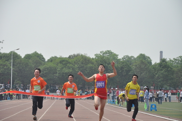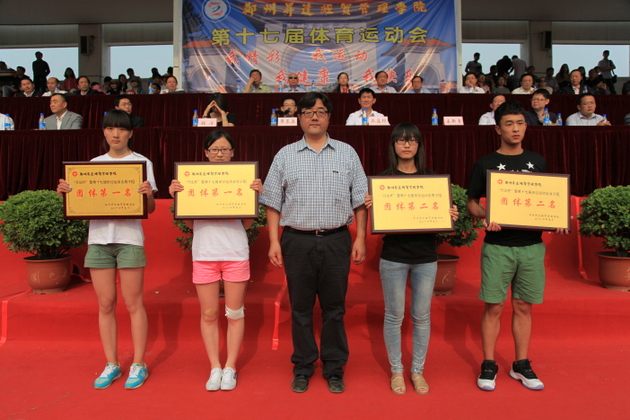 激情热烈的比赛正式拉开帷幕,本次运动会共设有45个比赛项目;共有9个系、3个教工支部,746名运动员参赛。经过两天激烈角逐,2项2人破校运会纪录;国贸系、会计系、营销系分获总团体冠、亚、季军;国贸系、会计系分获男子团体冠、亚军;国贸系、会计系分获女子团体冠、亚军;会计系、国贸系获得2013年度体育先进单位。出场式表演,营销系、企管系、外语系分获第一、二、三名。院领导分别向获奖集体颁发了奖杯和奖牌,并合影留念。